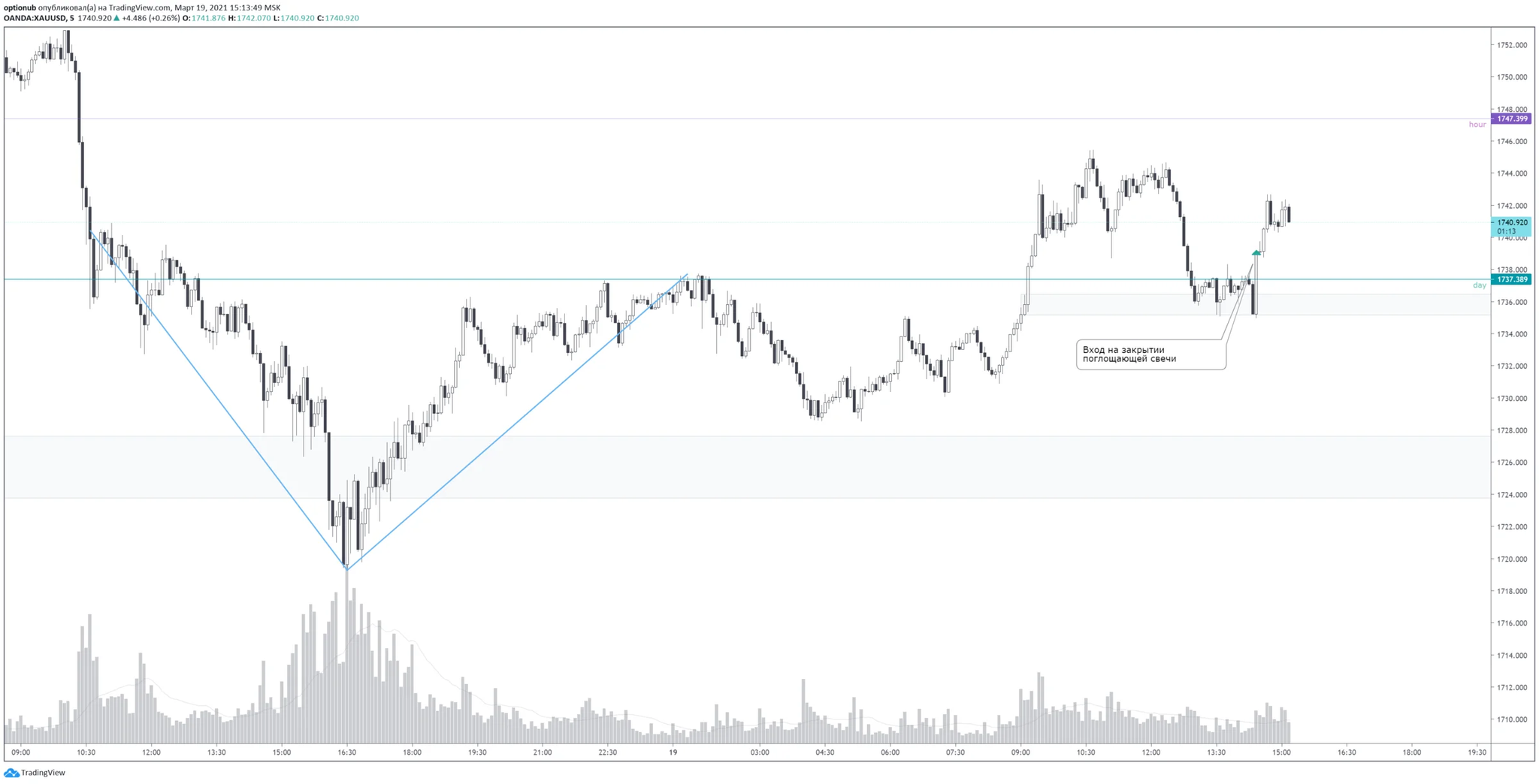 Теперь в зоне покупок/продаж или на уровне я буду спускаться до 5 минутного ТФ и там искать перелом тренда или подтверждение разворота. Т.е. теперь я буду стараться зайти в уже сформировавшийся новый тренд, что позволит делать вход более эффективно, я надеюсь. В идеале, конечно, чтобы вход еще сопровождался свечной моделью.