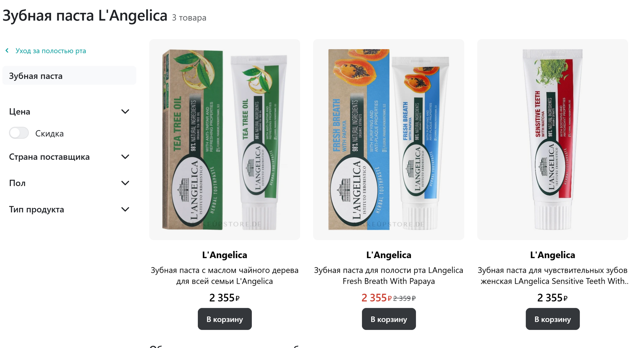 Забавная история вышла с зелененькой пастой на моей фотке – Л`Ангеликой. Я в душе не ебал что это такое, и первый раз её видел. Взял просто потому, что она была по акции, около 300 динар (230р) и чет со вкусом зеленого чая (я люблю такое) и 0% флюоридов, парабенов и слс и подобной хуйни. Купил кароч. Счас сидел, пилил пост и смотрел цены, когда увидел, что она оказывается итальянская. И, особо в Россию не возится. Но, некоторые всё-таки возят! Да так возят, что от цены я опять прихуел. Бляяя, надо было больше брать. Поездку бы окупил)).