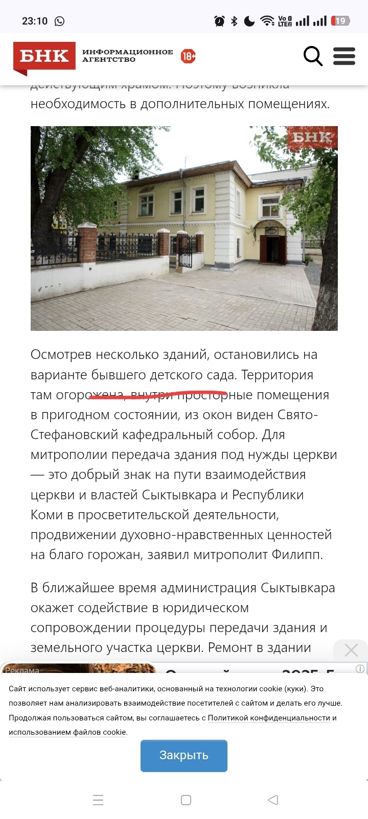 "В митрополии расценивают эту передачу как добрый знак на пути взаимодействия Церкви с властями Сыктывкара и Республики Коми в просветительской деятельности и продвижении духовно-нравственных ценностей."