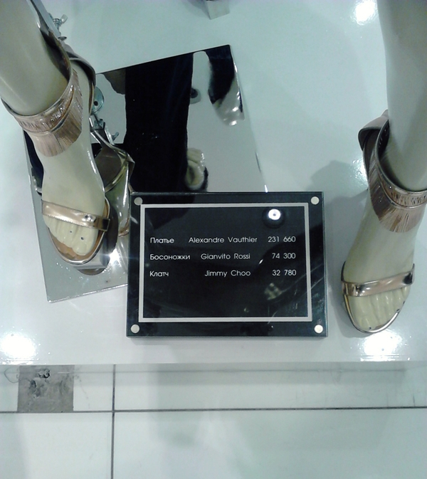 К нам подошел продавец-консультант, спросил может ли чем-нибудь помочь. Что-то придумывать было бессмысленно и глупо, поэтому я честно сказала, что мы зашли просто на ценники посмотреть, поудивляться, т.к. в нашем городе таких цен точно не встретишь. Продавец улыбнулся, вошел, так сказать, в положение, сказал что и москвичи заходят по тем же причинам и показал нам самые дорогие вещи в его отделе.