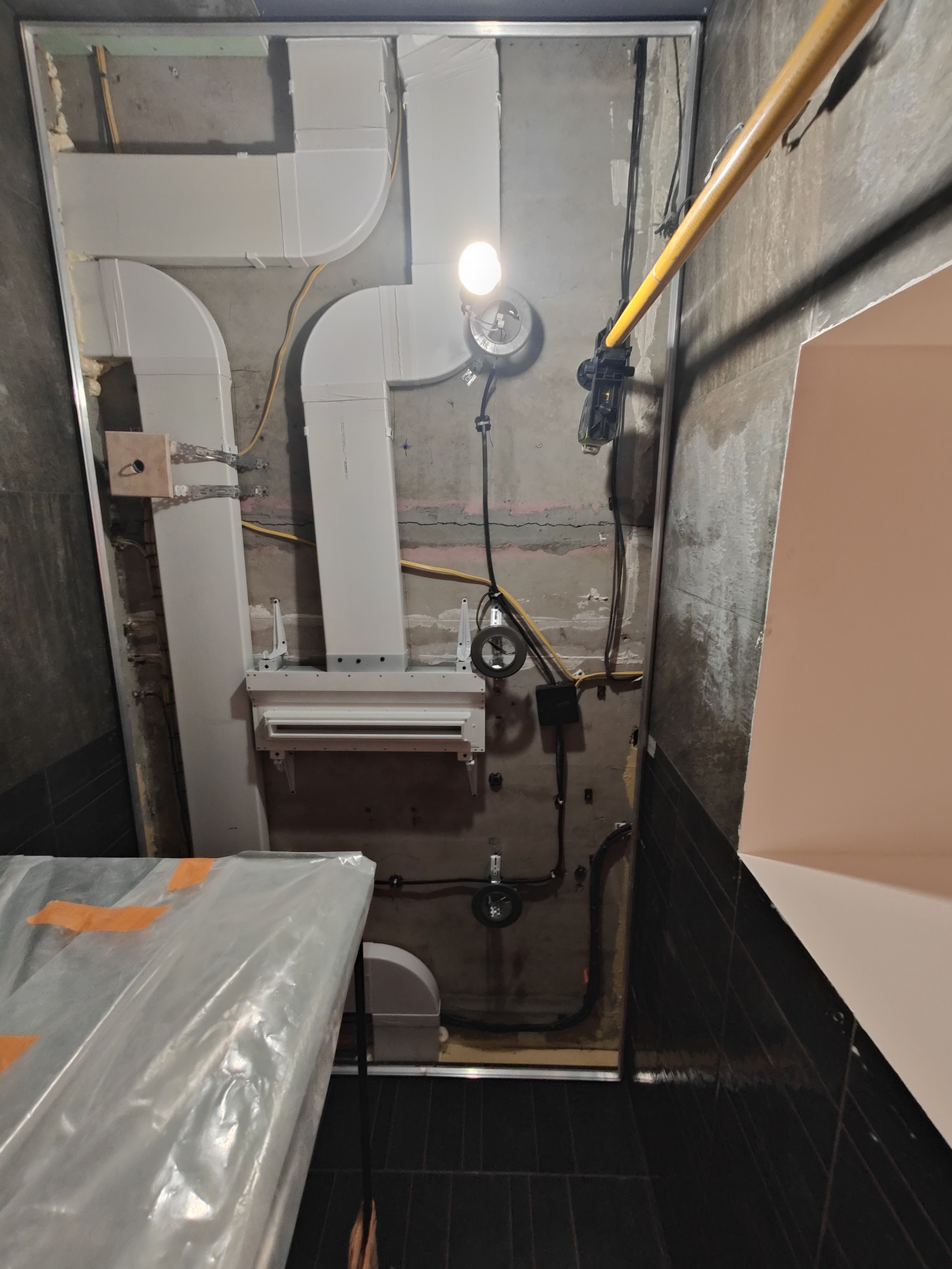 Всего по дому 4 вытяжки, из них умная только одна. Кухонная включается руками когда нужно, в ванной тоже, не было нужды настраивать, в постирочной делали на случай если сушилка будет перегревать воздух, но пока никто не жаловался, я не автоматизирую) есть сценарий только на вытяжку в душевой. Чтобы душевая не превращалась в парилку, там сделали щелевую решетку большого сечения и вытяжную установку, которая включается по такому же датчику, но по значению влажности. Поскольку в душевой мониторить CO2 и VOC не нужно, там датчики урезанной комплектации (они дешевле), от них только влажность пока требовалась.