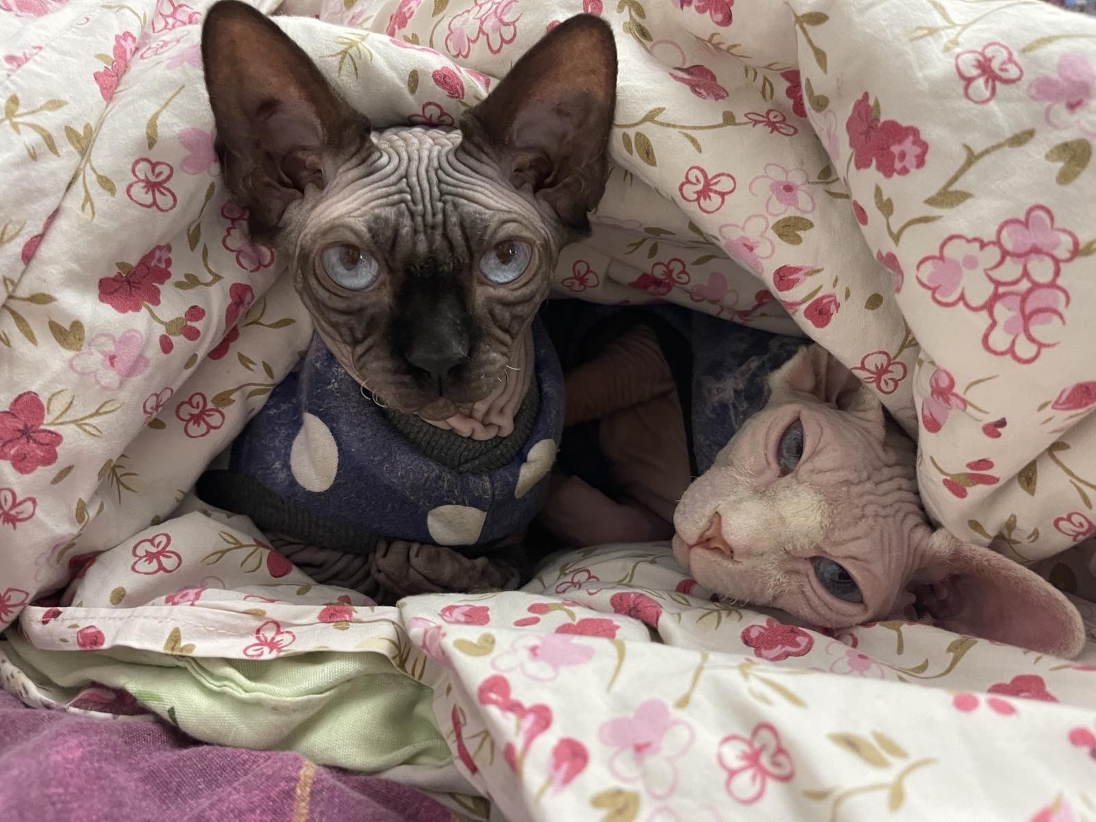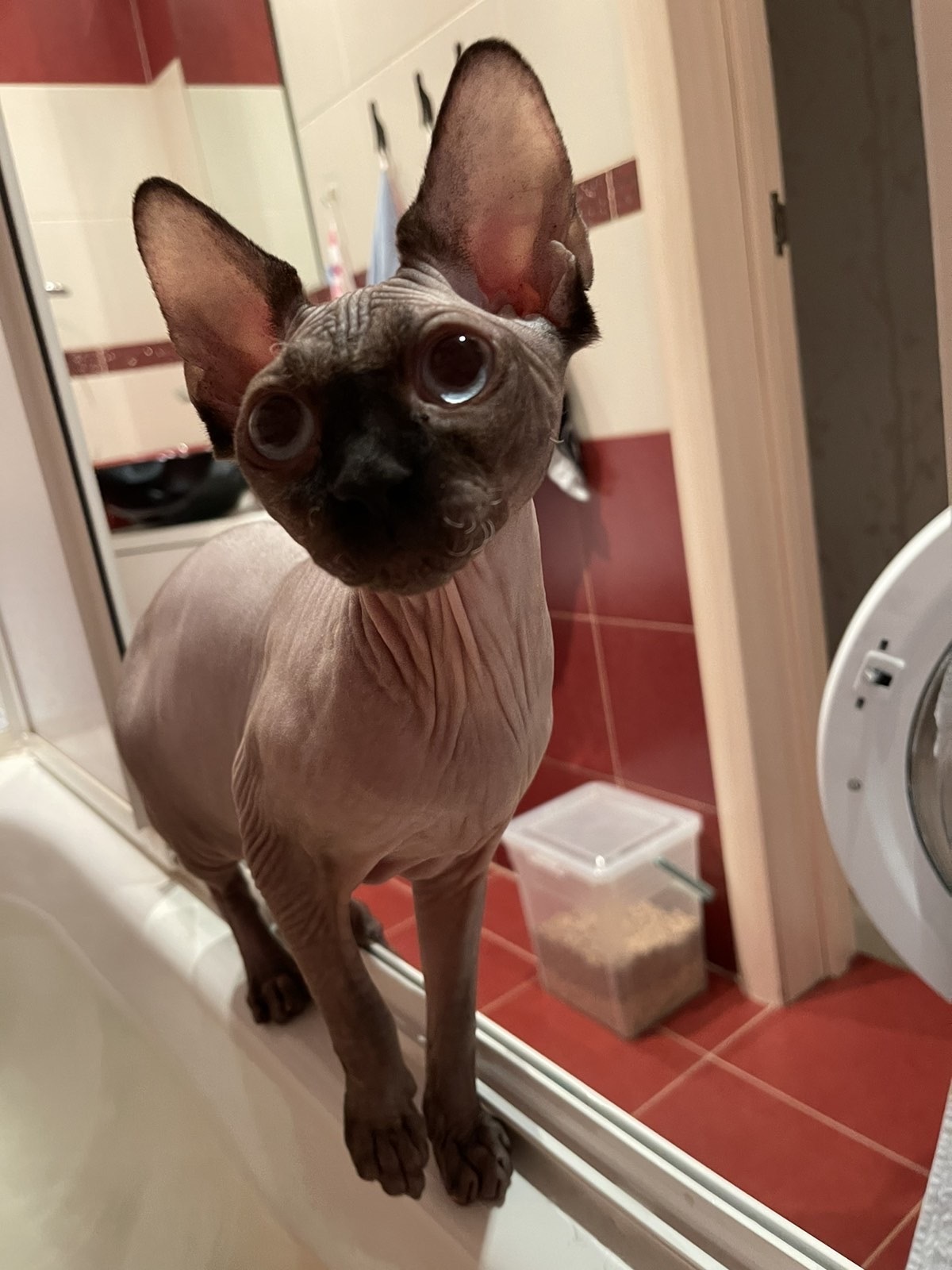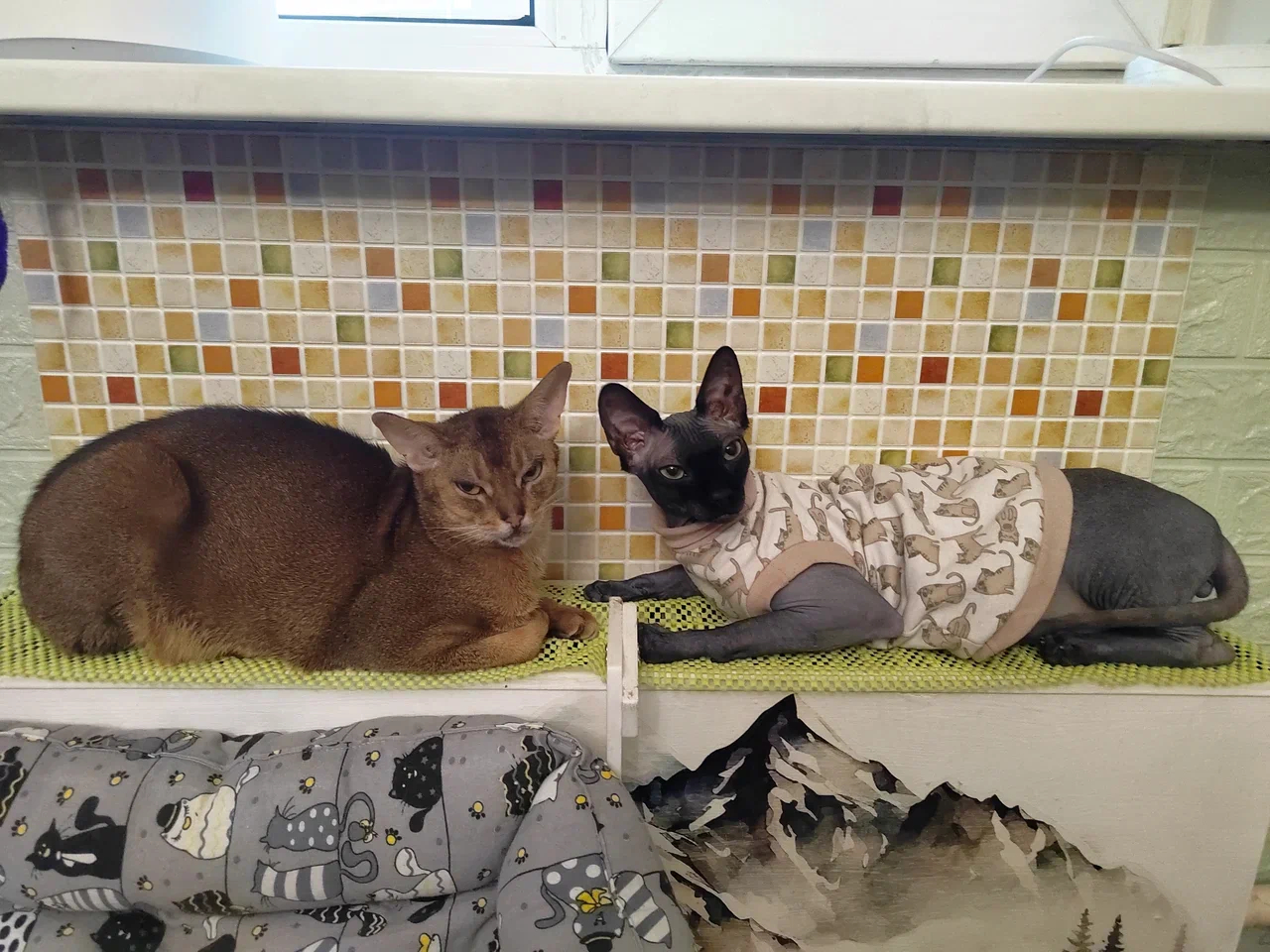 У меня старший кот, абик, 8 лет прожил эгоистом (болел, нельзя было второго). По сути это мой первый осознанно заведенный кот, я привыкла к нему одному и предполагала что лысого смогу завести только после того как этот уйдет на радугу+ год на карантин квартиры (а ему врачи давали не больше 6 лет) . А потом как то череда очень сильных везений (там просто миллион факторов сошлись в джекпот) и кот выдает отрицательный анализ на свою болячку. а потом снова и снова в течении полугода. И мне говорят заветное "больше не заразен, можно к другим животным"... Так что 23 февраля прошлого года приехал ко мне мелкий защитничек, канадец. В декабре год стукнул (а старшему уже 9й идет)