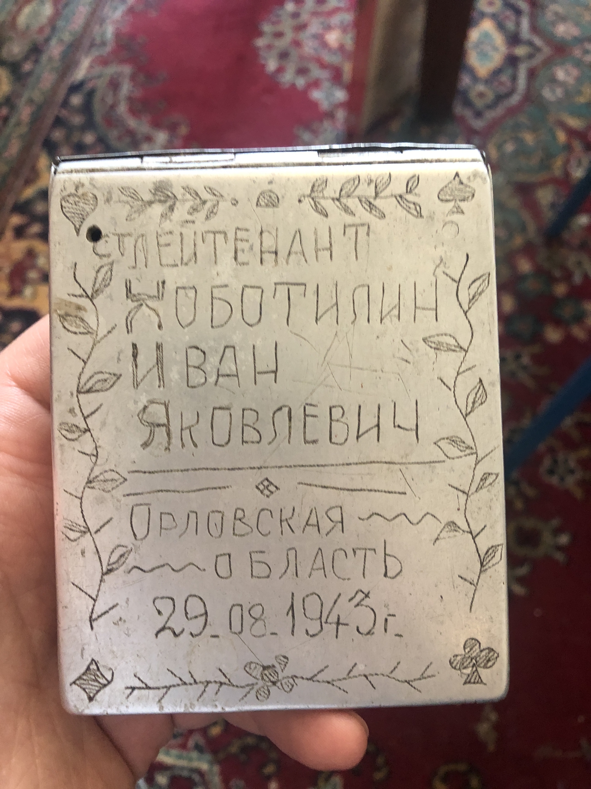 На фото - портсигар моего прадеда, который ему подарили сослуживцы. Он был в восьмидесятые годы украден из дома прадеда, но чудесным образом вернулся к моей бабушке через много лет. Теперь она хранит его как память. Память о тех страшных событиях.