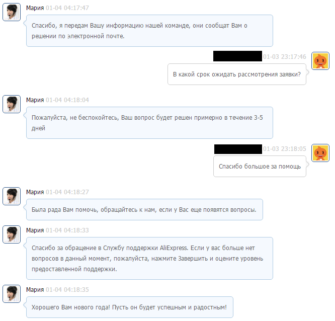Тут я понял, что дело приняло неприятный оборот. Написал еще раз китайцу (Ошибка #4) и, для уверенности, пошел в чат с поддержкой. Ниже скрин переписки с продавцом.