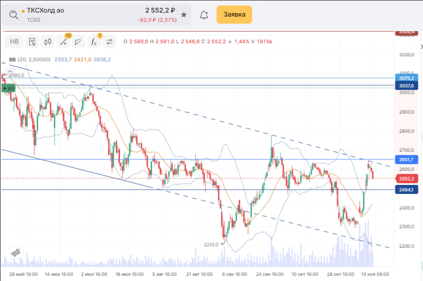 Как ювелирно некоторые бумаги иногда ходят. Вот, например, график ТКС. Обычно приходится с течением времени немного двигать границы каналов, менять угол наклона.. Тут ничего двигать не надо: дошли до верхней границы - отвалились и баста !😊 Ну красиво же, правда ?
