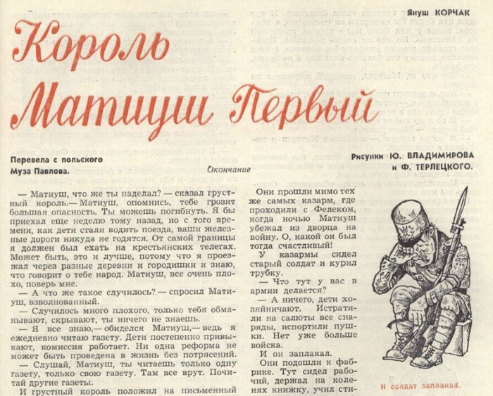 Знал и то, что "пионерскую" публикацию иллюстрировали Владимиров и Терлецкий, которые в журнале, похоже, были дежурными "сказочниками" - именно они на следующий год после "Матиуша" сделают первые отечественные иллюстрации к "Мэри Поппинс".