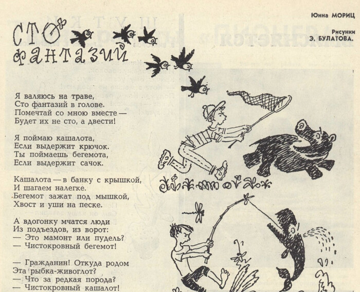 Стихи Юнны Мориц с иллюстрациями будущего мэтра соц-арта Эрика Булатова.