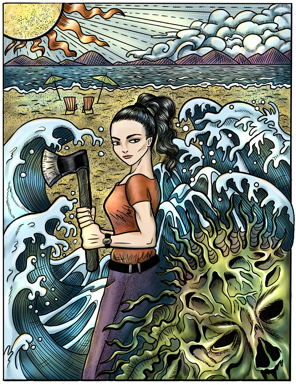 Иллюстрация для моего романа "Мертвецы из Лазурной бухты". Рисовала как обложку, но что-то пошло не так, и арт остался как иллюстрация. Нарисовано в Infinite Painter c карандашного скетча.