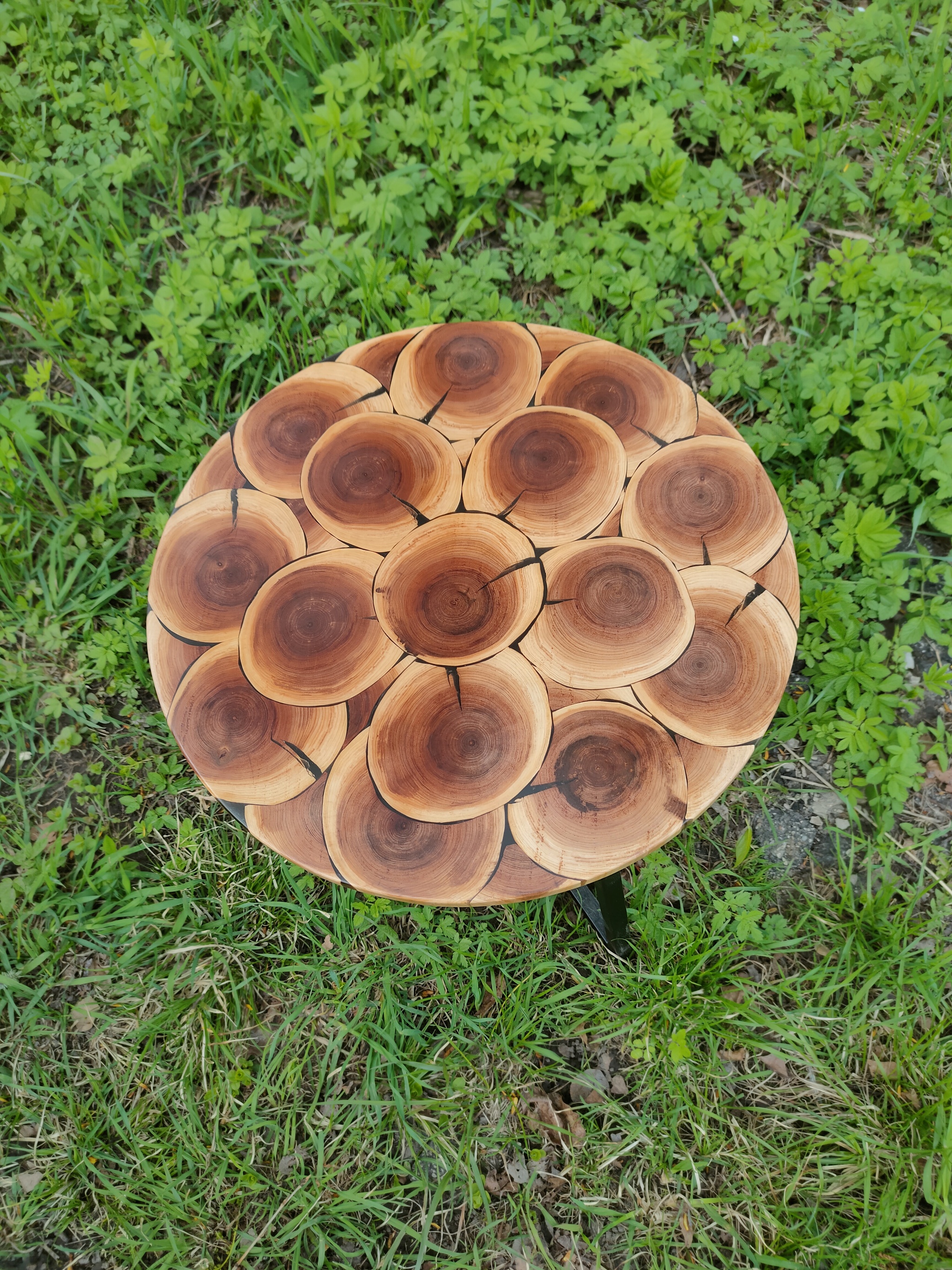 Никогда не занимался ни чем подобным. Нашел в лесу упавшую рябину. Живу в деревне рядом с этим самым лесом. На изломе показалось интересным, что сердцевина дерева выглядит темнее. Поскольку на дрова оно всегда успеется, решил подпилить на блинчики. И так они понравились что подумалось, что из этого может получится интересный журнальный столик. И началась эпопея с сушкой , покупкой инструмента и эпоксидной смолы. В итоге вот такой получился. Не думаю, что пост много наберёт. Но если кто-то хочет поддержать деревенского мастера "лайком", буду благодарен!
