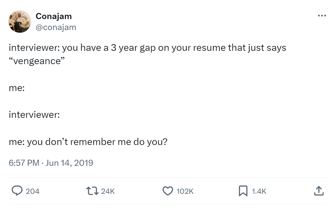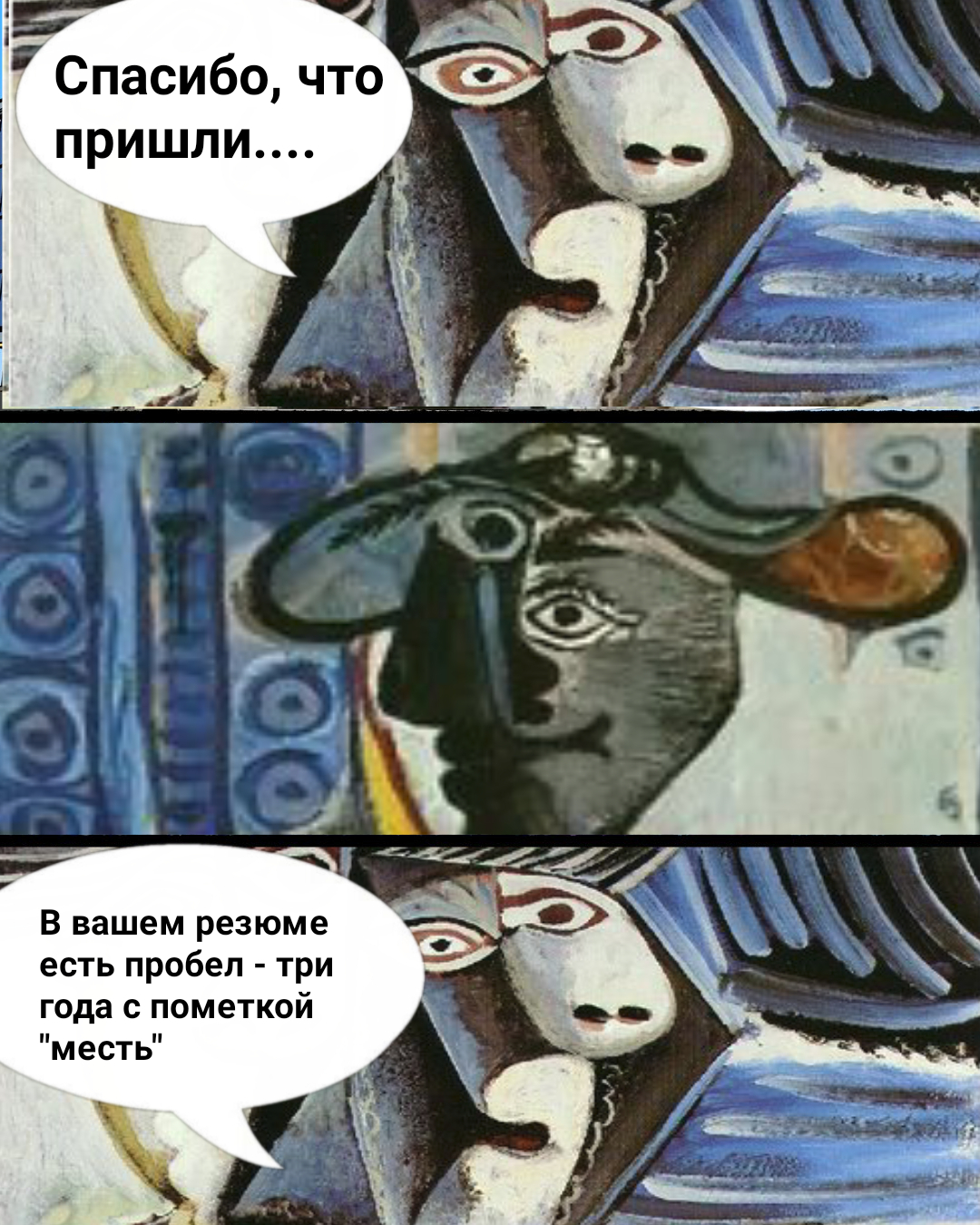 Такой короткий комикс с открытым финалом - девушку собеседуют на работу, спрашивают, что она делала последние три года, а она, оказывается готовилась отомстить парню HR, который её даже не узнал. А уж что он там ей сделал, и убьёт ли она его - читатели додумывают сами