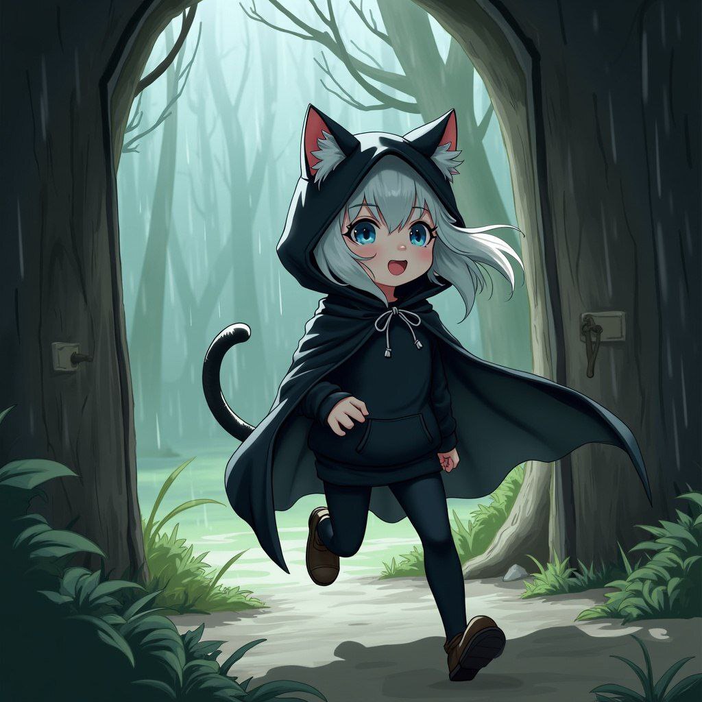 В дали зашуршал ветер. Она начала забавно перебирать ушками и случайно высунула их из-под капюшона