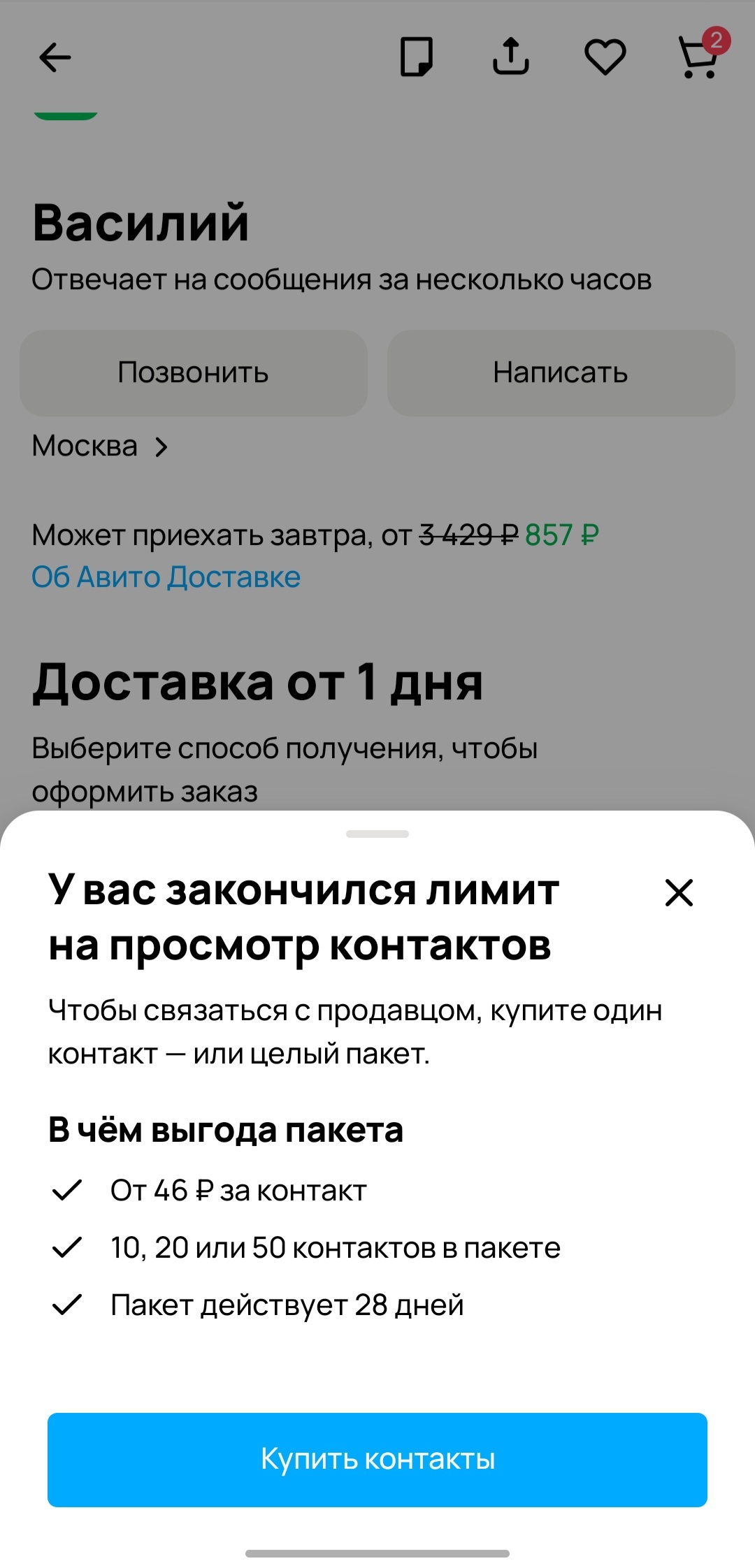 Но до этого за трое суток написал 2 людям, это объявление было третьим, да и не номер просил, а окно вылезло, когда хотел перейти в диалог с продавцом...