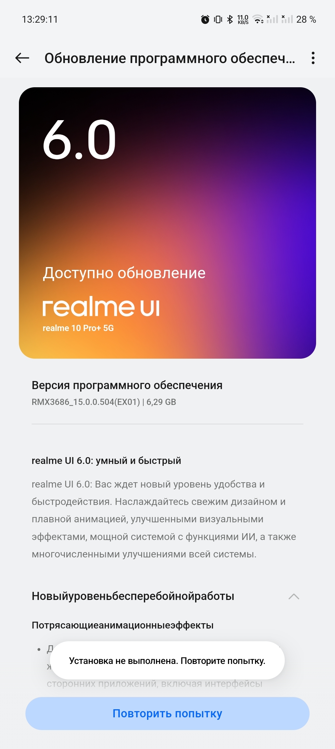 Проблема с обновлением Realme UI 6.0