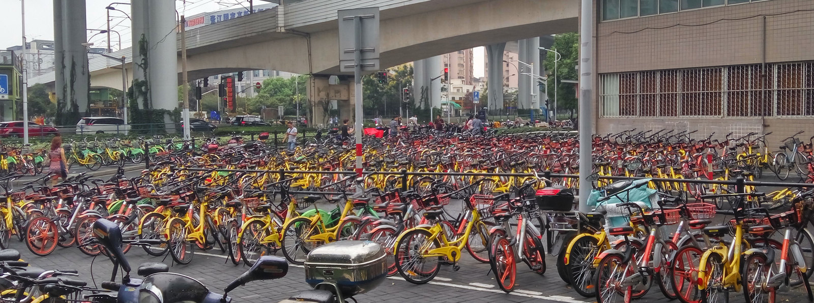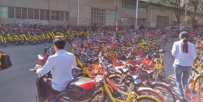 В последнее время в Китае стало очень много общественных велосипедов. Ими стали пользоваться даже те, что раньше не ездил на них. Велосипедов стало настолько много, что ими стали заставлять все подходы к метро и близлежащие улицы создавая заторы - люди не могут пройти, машины проехать.