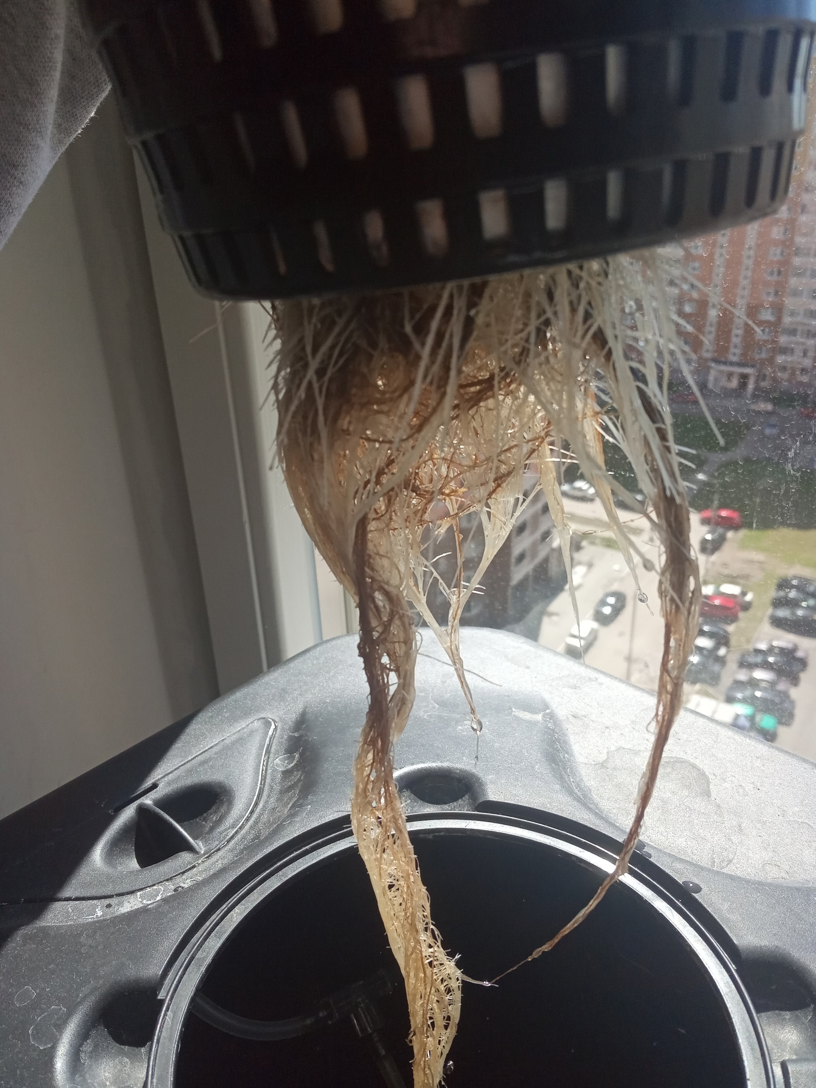 Всем доброго времени суток. Выращиваю клубнику DWC. Уже не 1 раз сталкиваюсь с проблемой, что при повышении концетрации раствора, согласно инструкции, использую GHE. Начинают темнеть корни. Так было на стадии роста корней, потом при переходе на рост листов, рост растения. Концетрат делаю согласно инструкции - 1,8 1,2 0,6 Вода водопроводная, до этого при меньшей концетрации не было проблем. Выращиваю клубнику. Справа можно видеть корень, он похож на гниль, но не отрывается спокойно, ниже из той связки идут нормальные корни. Ph 6, ppm 450. Растет на окне. Солнечный день с 4 утра до 17 часов, без досветки. Ещё раз. Проблема эта не наблюдается при стабильном растворе. У меня 1.5 месяца был на растворе 1 1 1 и проблем не было, только при переходах(корни-первые цветы-рост растения).