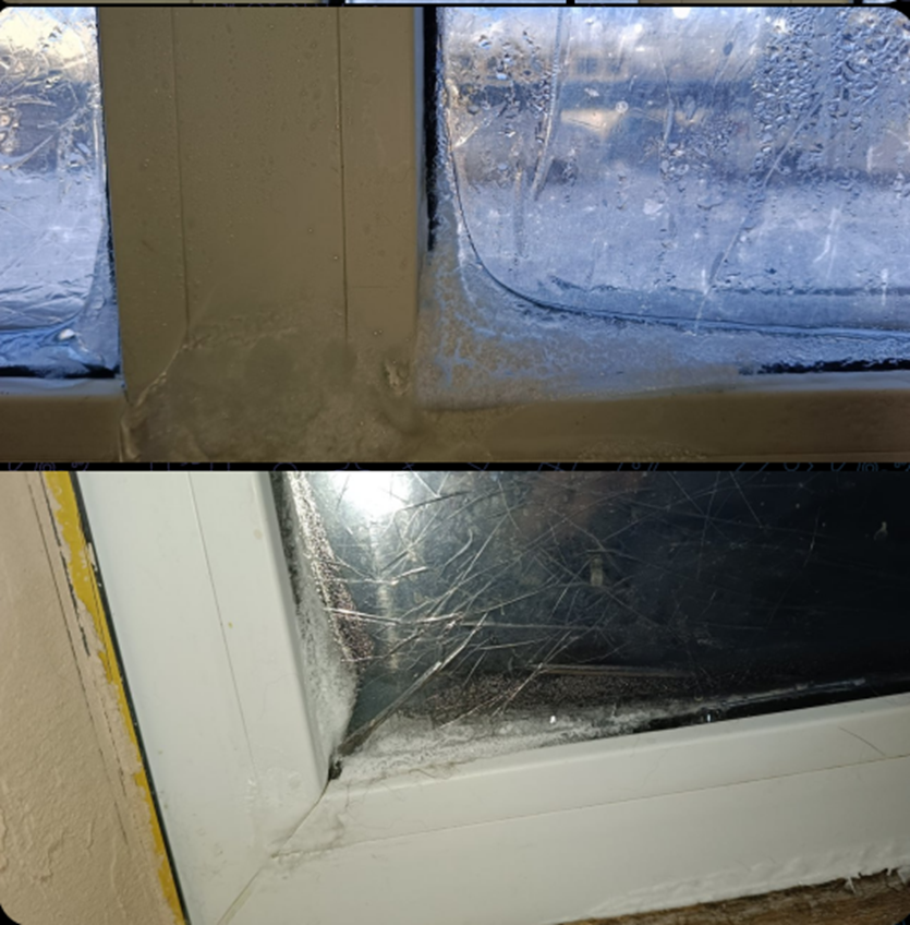 Прошлой зимой пришедший сотрудник застройщика не стал проводить теплосъёмку или фиксировать образование льда на окне и промерзание угла. Весной они ответили вот так: