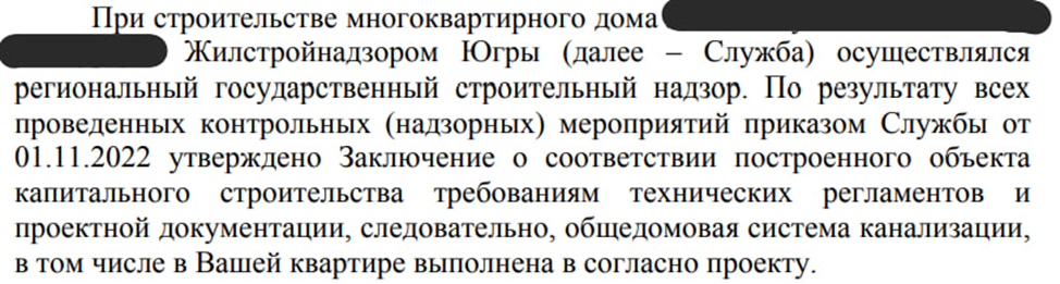 Жилищная инспекция, кстати, ответила вот так, даже не посещая квартиру: