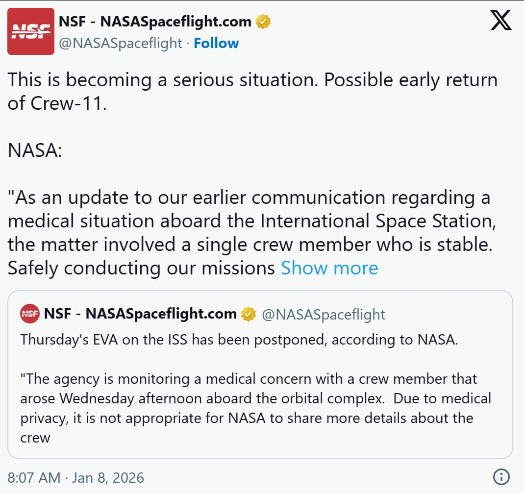 UPD1: Похоже ситуация серьезнее, чем хотелось бы. Возможно досрочное возвращение корабля Crew-11