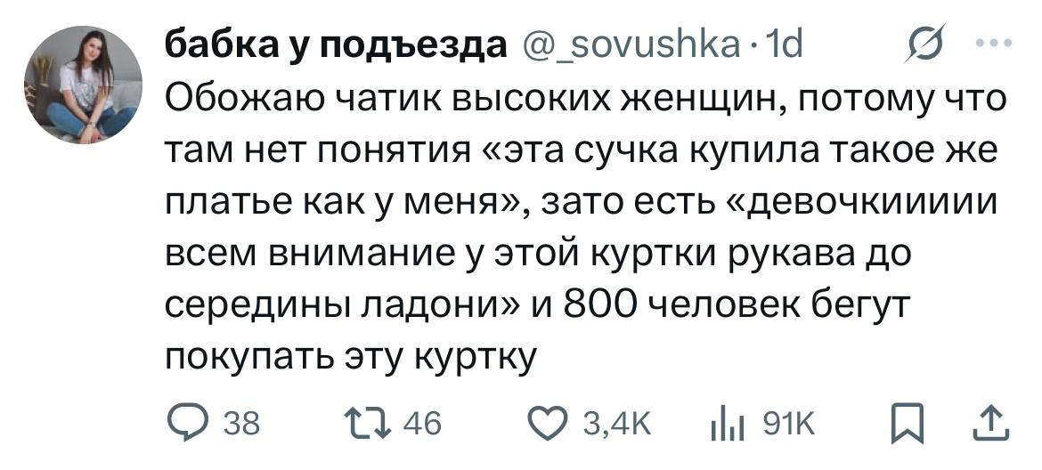 214 memen Юмор для всех и каждого Проблемы высоких 9 месяцев назад из тг memento Женщины Большой рост Покупка Чат Скриншот Куртка Telegram (ссылка) X (Twitter) 8 6 Ещё 0
