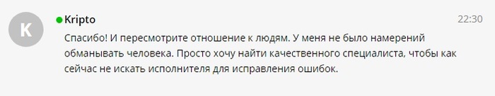 Ну а дальше уже если он и правда окажется нормальным и захочет сотрудничать, то текст можешь удалить свой. А если кидала то никакого профита он с текста не получит, скорее только вред.