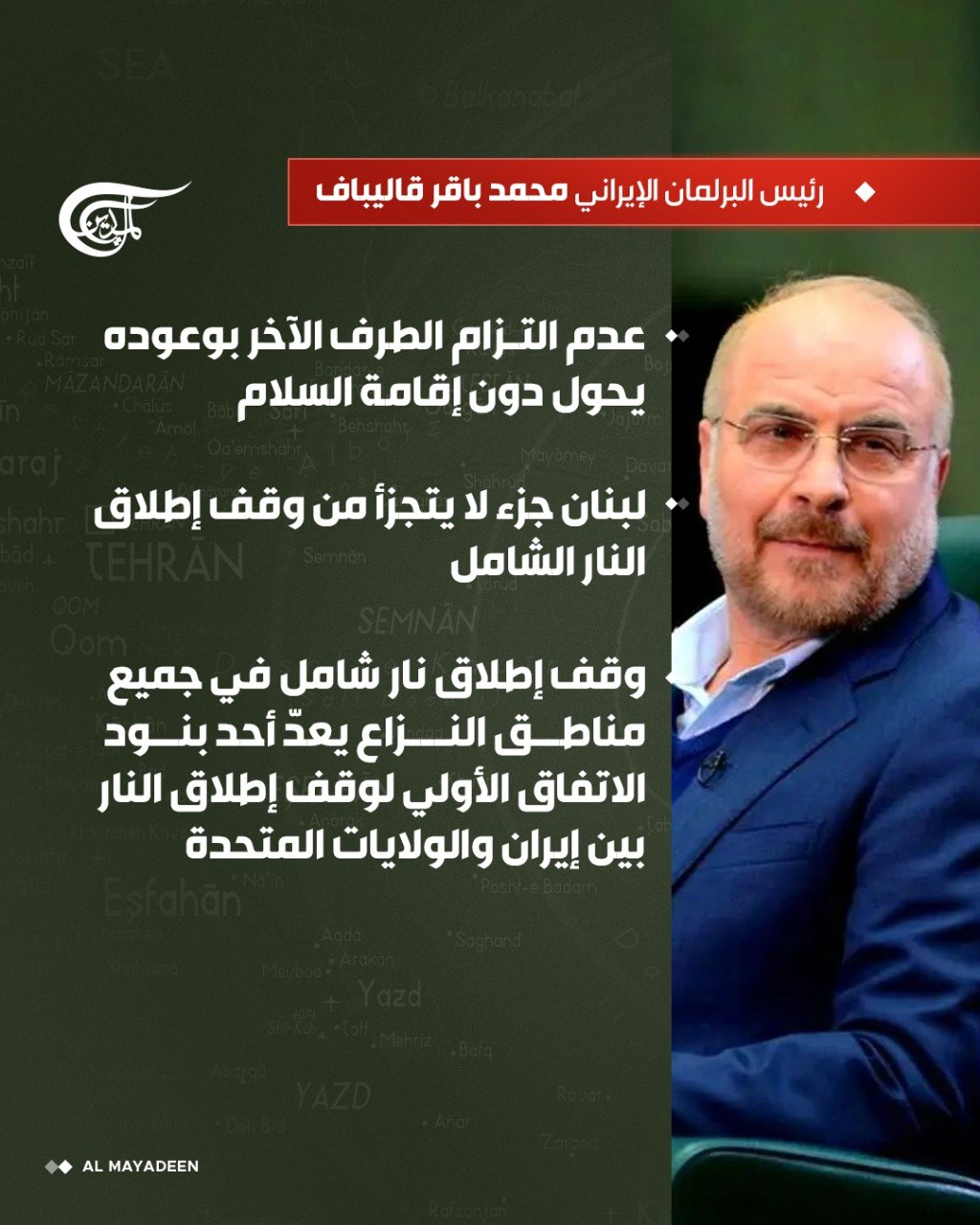 15:15 Cпикер Меджлиса: Тегерану перемирие в Ливане важно настолько же, насколько в Иране