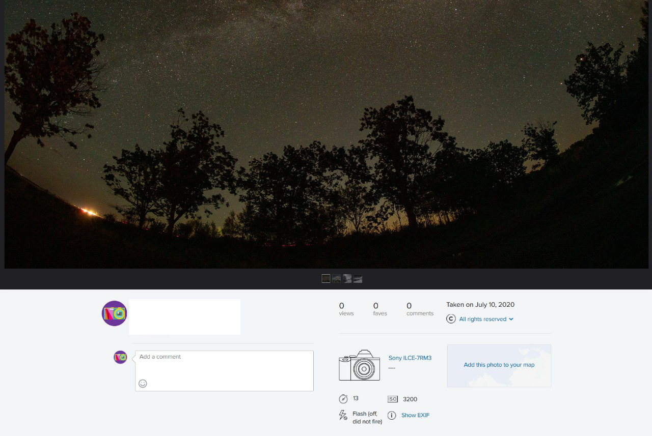 у меня пока тоже опыта немного, методом тыка так получилось ) при меньших цифрах диафрагмы деревья размытыми становились, это потом уже пришло в голову, что сначала можно сфотографировать деревья, а потом уже накапливать фото млечного пути и совместить эти фото. Как только поймаю опять небо, попробую на зажатой диафрагме.