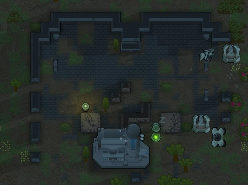 Пока что там я там отстроил две комнаты, склад в каких-то руинах, поставил энергоячейку и ту самую турель. Надо будет сделать холодос, столовку, кухню и построить пусковые установки на случай экстренной необходимости. Сильно обживаться и обустраивать быт, организовывать готовку я там не планирую, но не всегда смогу поставлять жратву с основной базы. Планирую туда перевести половину стада и начать строить второй монумент уже там.