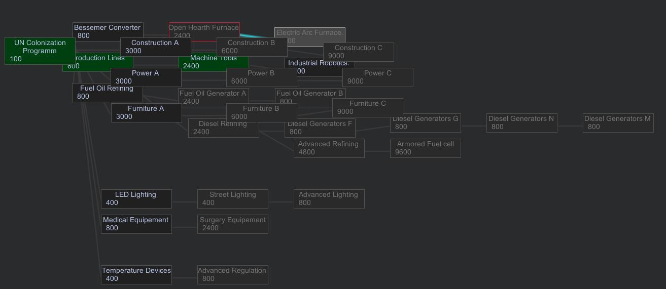 У меня было изучено и построено несколько станков из мода UN-Colonization/UN-Industry, которые производят различный металлопрокат и профиль. Из этих деталей можно собирать другие станки, производящие те же профили быстрее и в большем количестве, раздвижные двери, медицинские кровати, исследовательские столы, холодильники, в целом – всё, но из других материалов. Это интересно, но у меня уже имеет смысл, так как все было уже построено и есть более доступные альтернативы. Наверное, если отключить другие мебельные моды, то простые кровати, холодильники и прочее будут недоступны и тут уже все будет интересней. Буду экспериментировать с этим в новой игре. Если не ошибаюсь, какой-то из модов из этой серии добавляет на карту месторождения нефти/газа – их можно добывать, перекачивать, хранить и соответствующим образом использовать. Перегонять на дизель и строить генераторы, например. Все это требует длительного изучения, большого пространства для постройки и много стали.