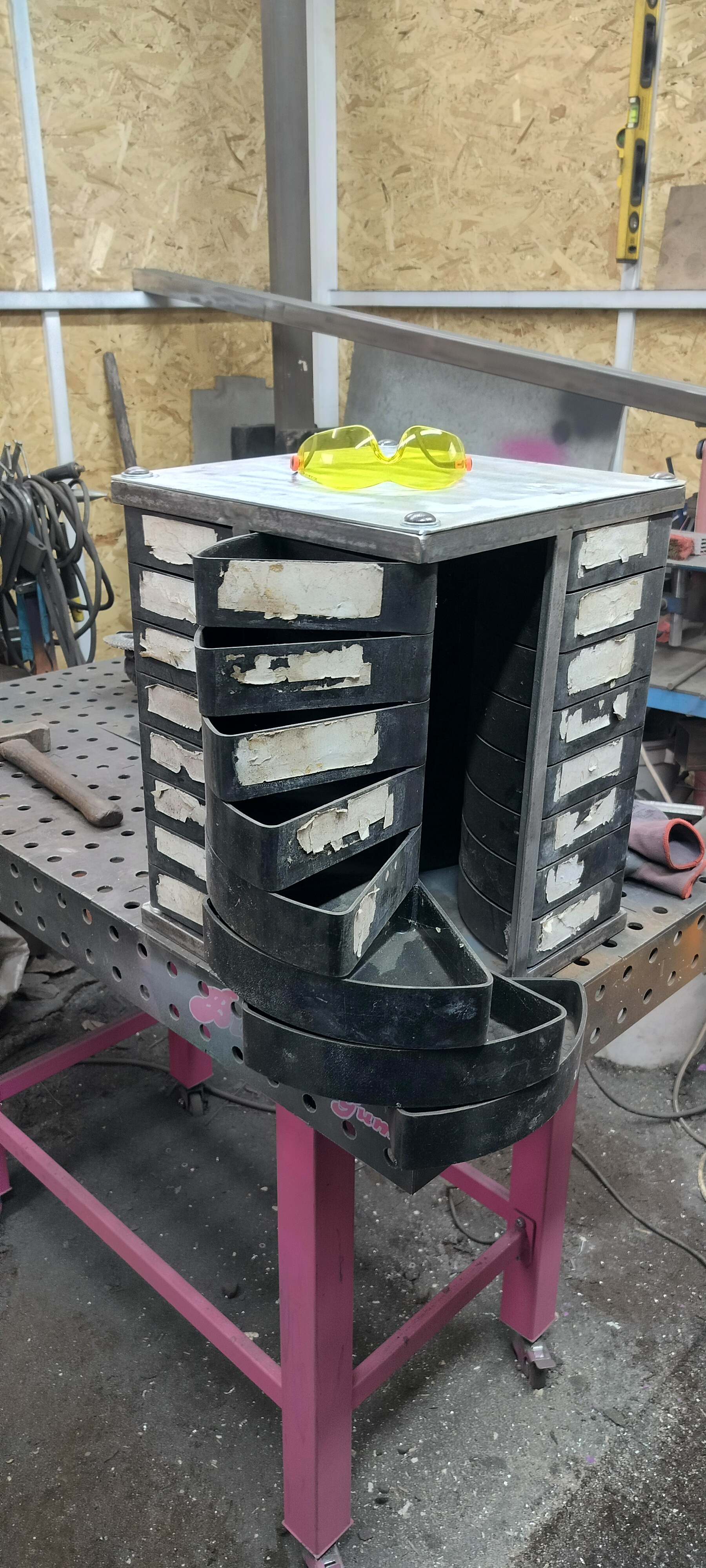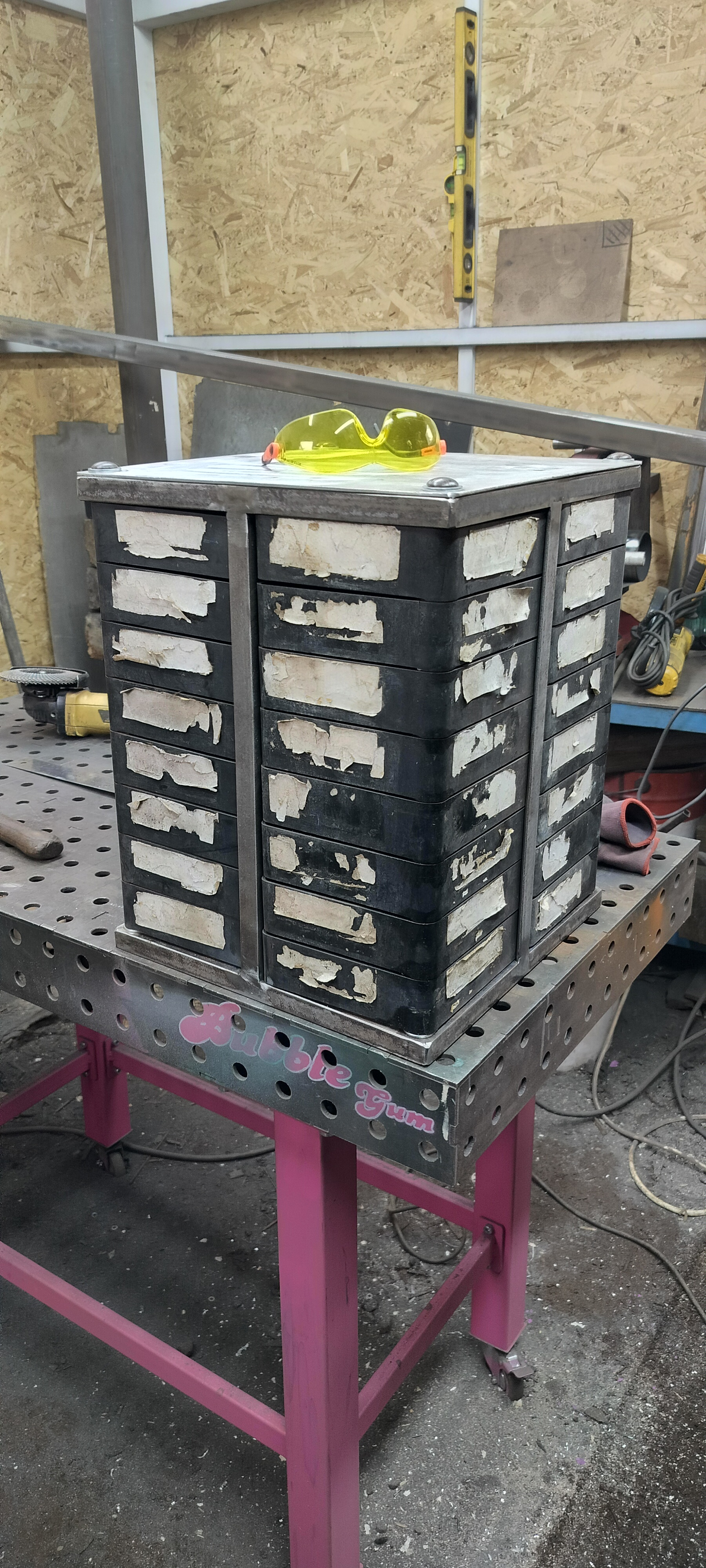 Сейчас осталось покрасить металлические части, а ящички почистить и наклеить новые стикеры для маркировки.