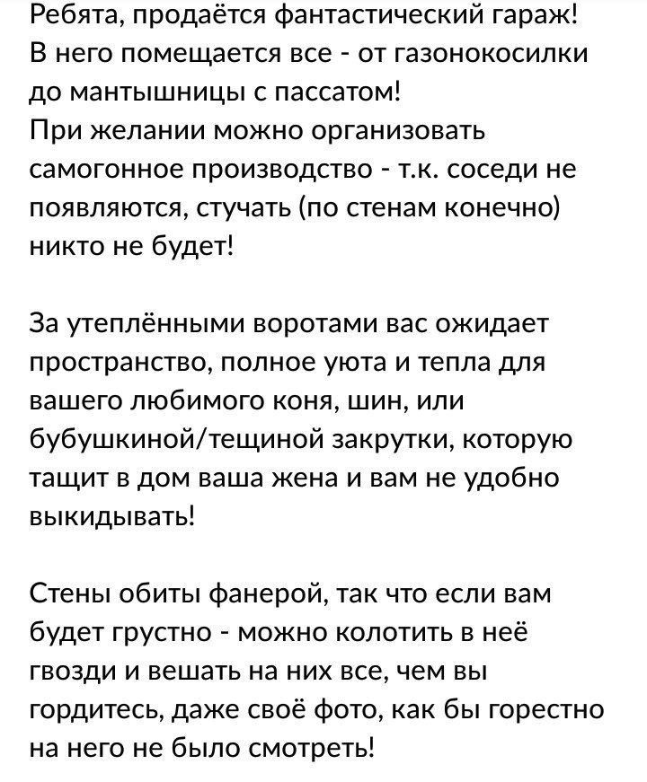 1468 Fedeny Продается гараж 6 лет назад Наткнулась на объявление на известном сайте... Гараж Объявление Мужчины Длиннопост Авито