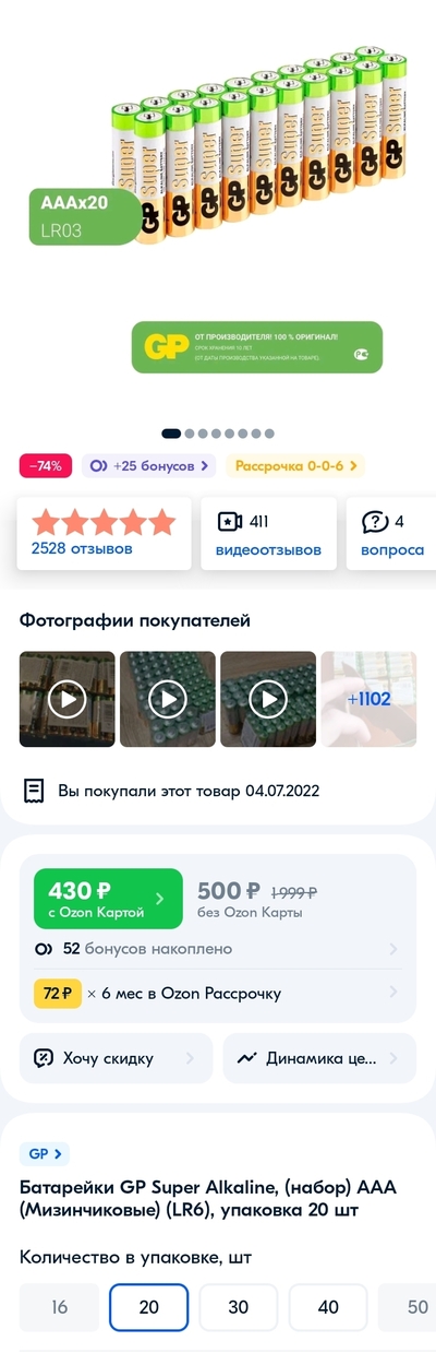 Прочитал на днях на специализированном сайте обзор, как на одном ягодном сайте продавались поддельные батарейки. И вспомнил, что сам покупал летом GP Super, но на Озоне.