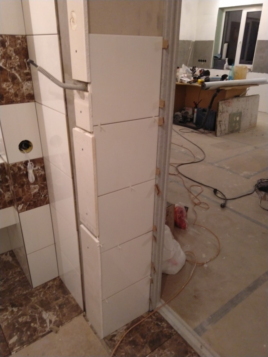 Доделал подрезку. Остался дверной проем с откосами, а также мозаика в душевой. За ней-то я завтра и направлю стопы в славный град Петров.