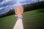 Вы мне даёте фотку (я распечатаю плоскую фигурку, можно использовать и ту, что на гифке) или имеющегося у Вас игрушечного печенюха, я цепляю его вперёд коптера и отправляюсь в поле выкрутасничать, получившийся результат скидываю Вам - главное скажите, сколько примерно по времени. Могу сделать видео в форме небольшого поздравительного ролика.