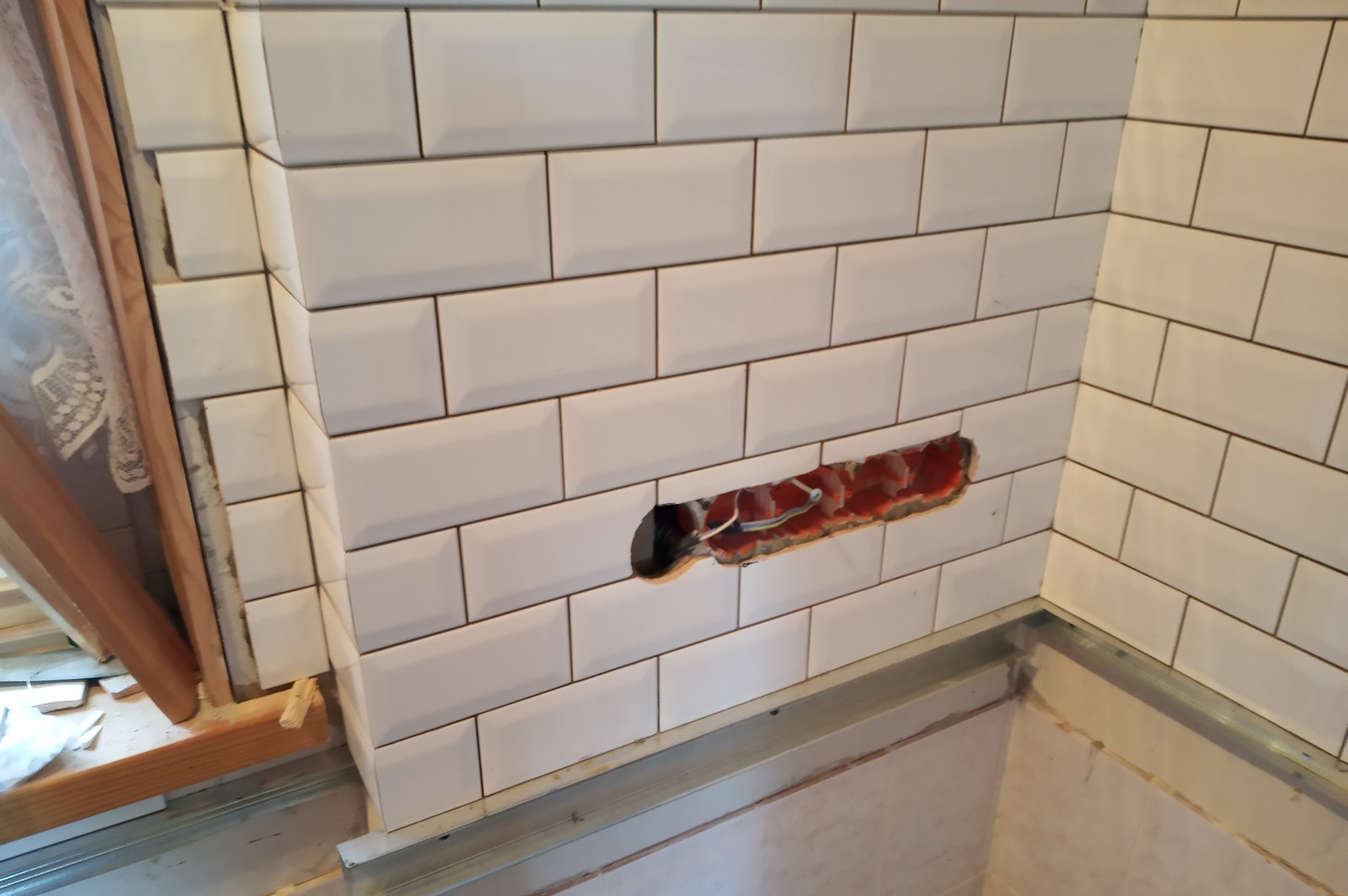 Одновременно укладывается фартук на кухне с новыми подрозетниками