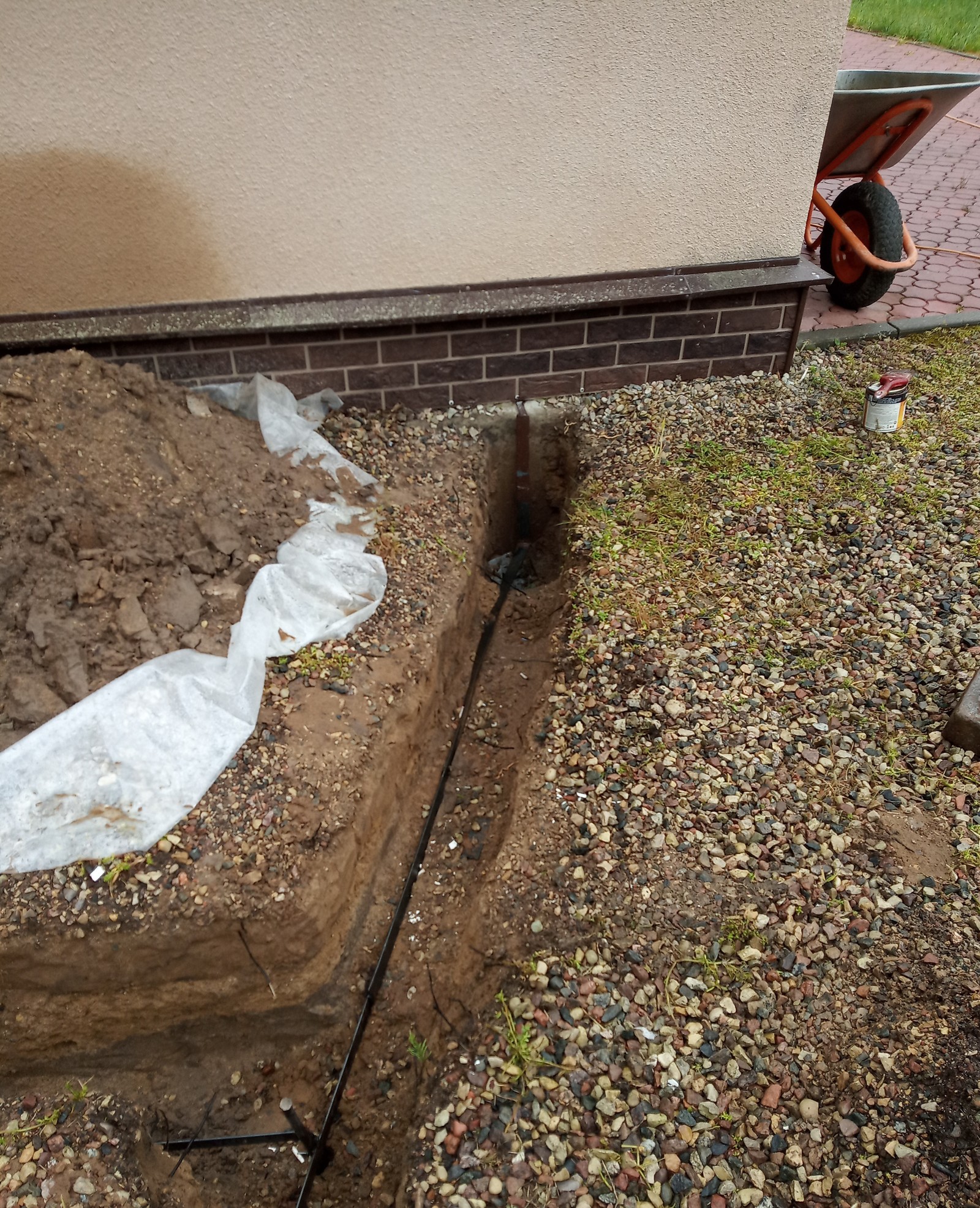 Копаем траншею забиваем прут ф18 мм и длиной 3м, именно прут не арматуру, свариваем шиной 4*40мм и заводим в помещение.