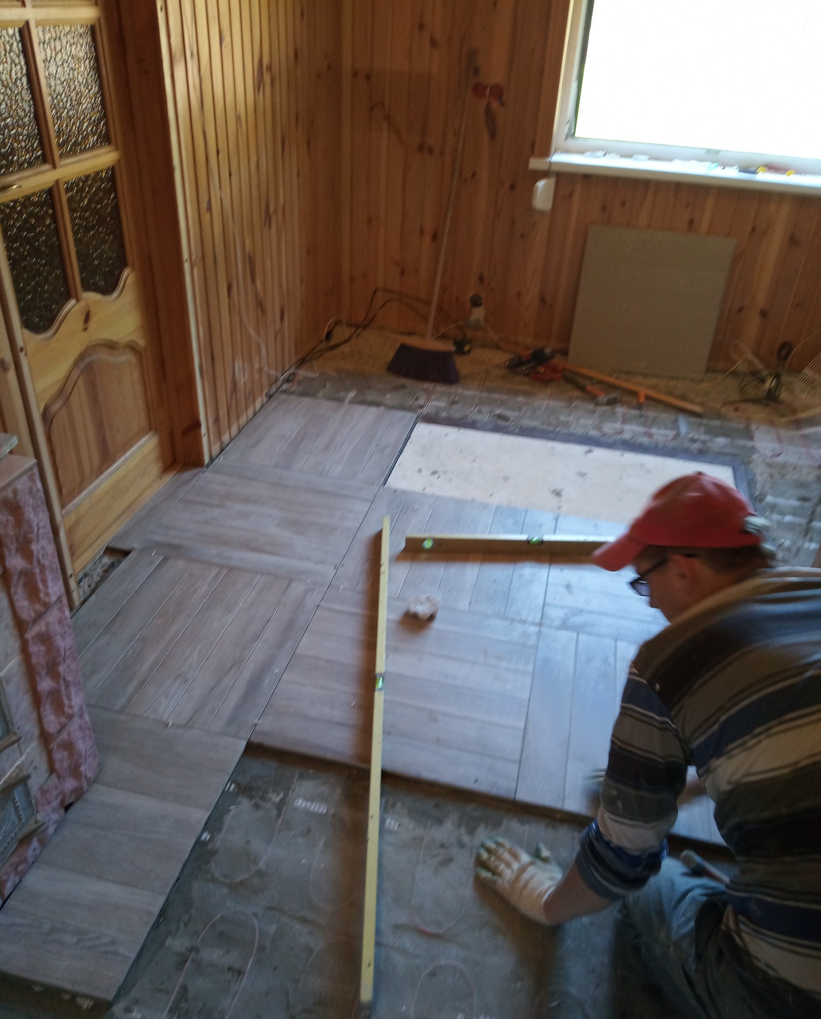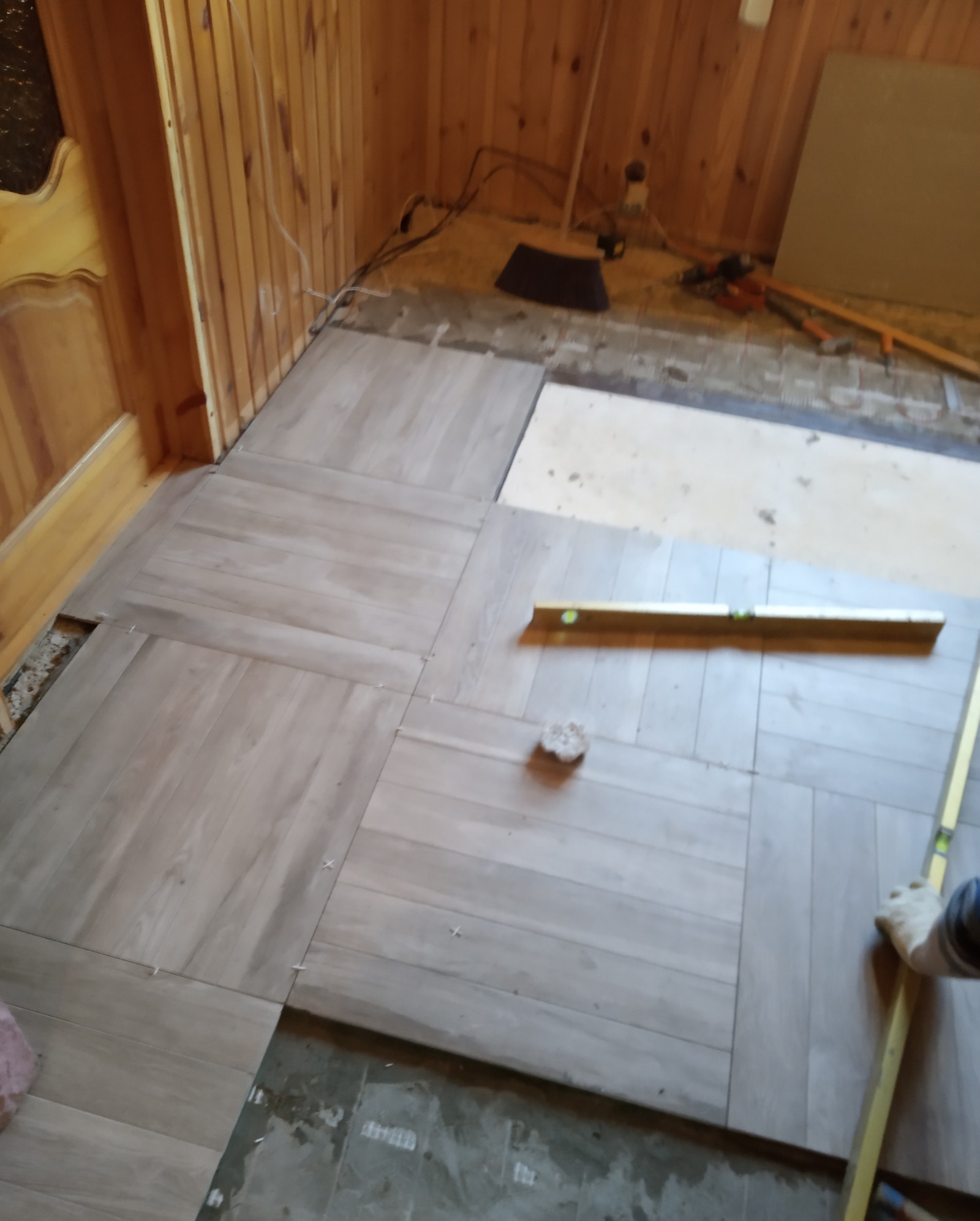Ну и напольное покрытие кухни. Начало