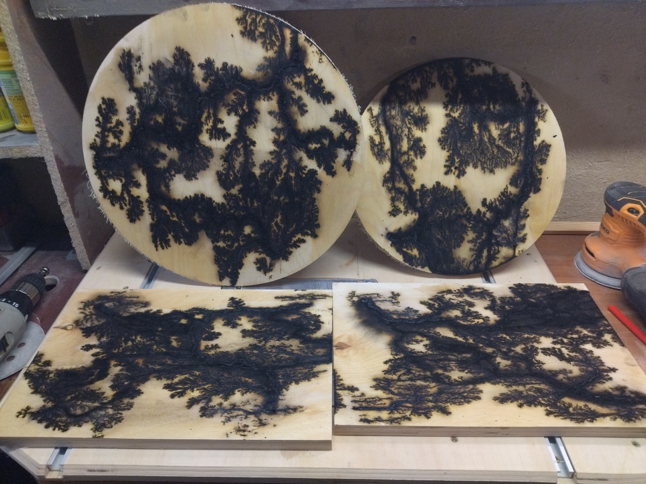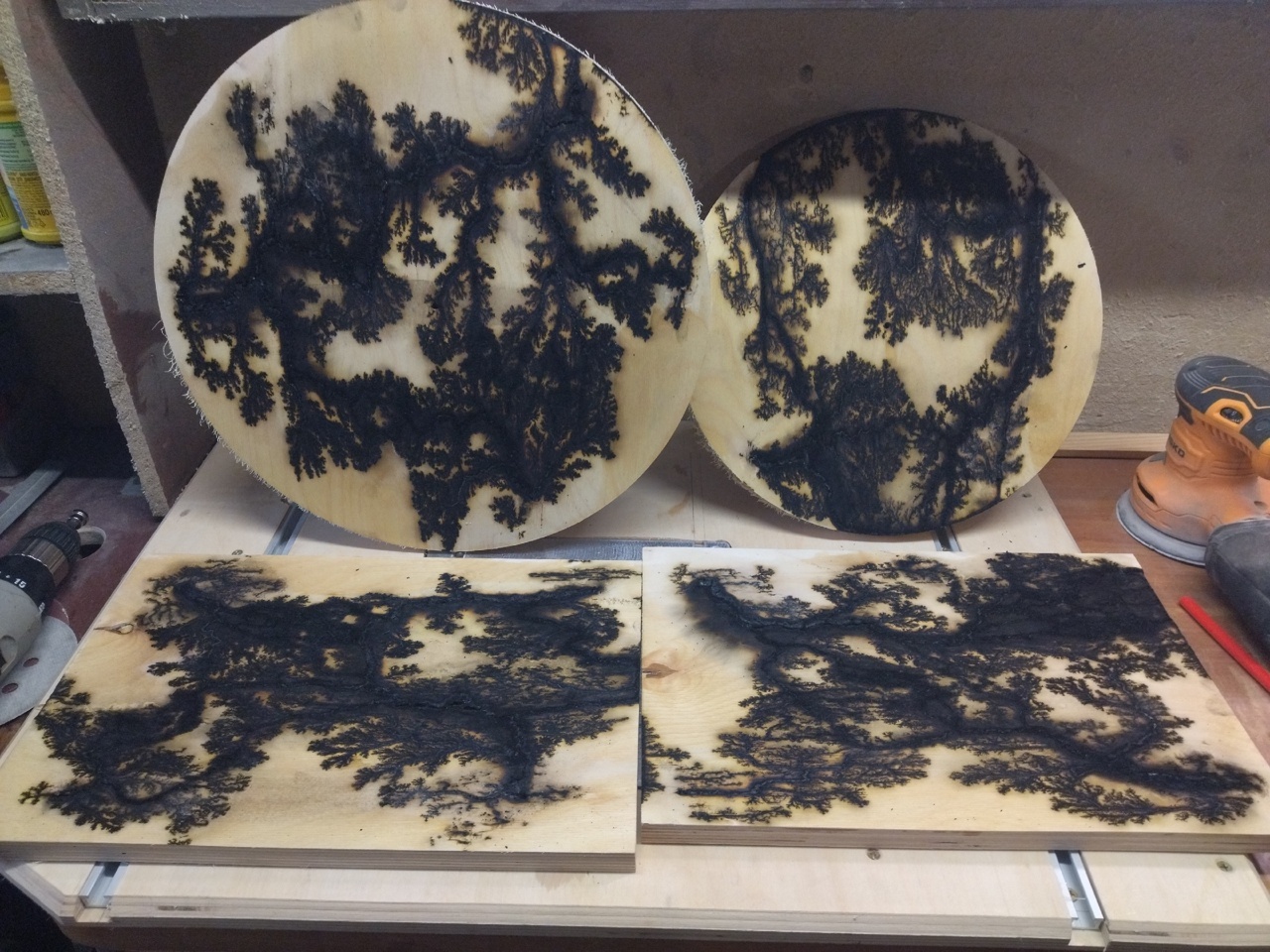 8 WorkshopCRM Продолжаем эксперименты с высоковольтным выжигателем... Серия Линии Лихтенберга (Фрактальное выжигание) 3 месяца назад [моё] Творчество Картина Фигуры Лихтенберга Выжигатель Молния Длиннопост Ещё 0