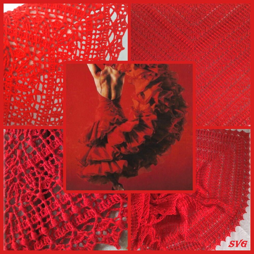 Шаль связана крючком № 3 из двух мотков пряжи Flowers цвет 280 (в остатке 8 г)