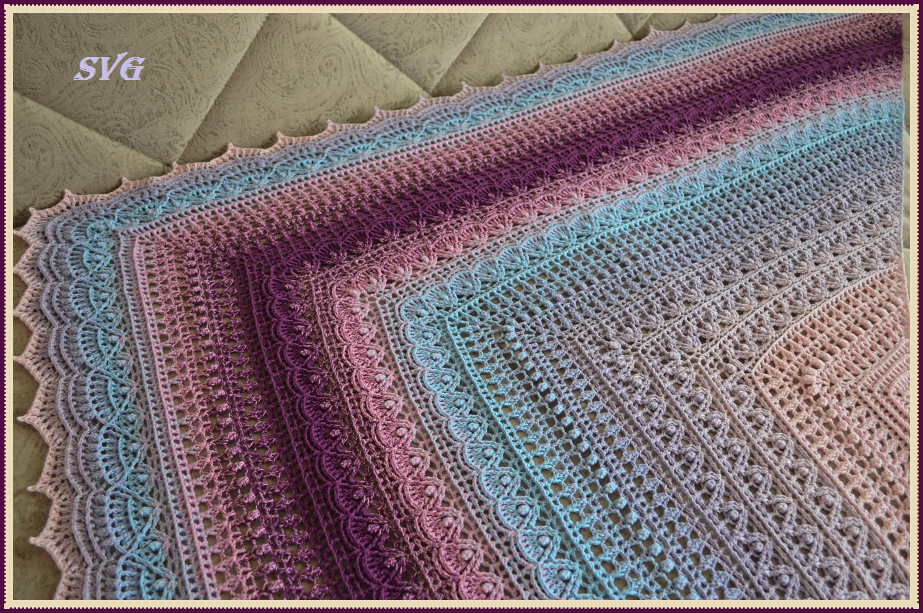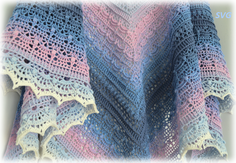 Шаль связана крючком № 3 из двух целых мотков (в остатке 4 метра) Rosegarden Yarnart 100 % хлопок градиент 1000/250 цвет № 301
