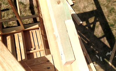 . сучки тогда хорошо удаляются далее втыкаем столбы на свои места и временно крепим на чёрные саморезу)) да это единственные черные саморезы в этом доме и я их естественно потом удалю.