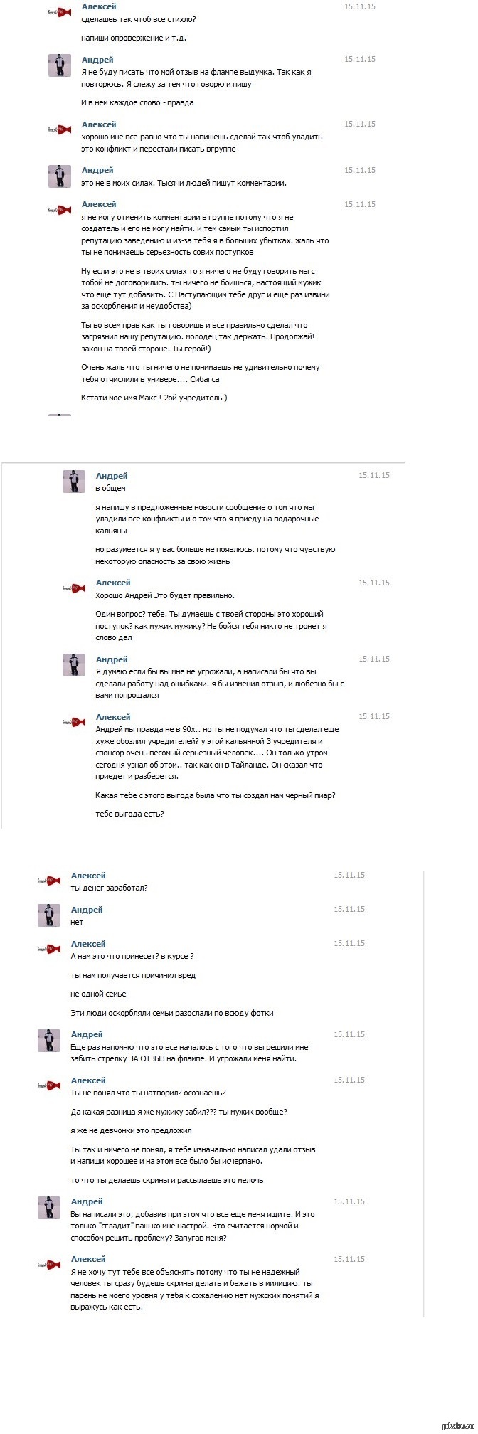 "у тебя нет понятий" Ахах,...ахахаха))) Чувак, ты все правильно сделал. Если они такие идиоты, что не осознают своей ошибки, что не комменты хорошие нужно писать, а в привести кальянную в порядок, обучить официантов и обеспечить качественное оказание услуг. А пока что судя по всему описанному, у этих учредителей представление о кальянной, как о опиумном притоне 1830 года, где люди лежали, умирали и начинали гнить.