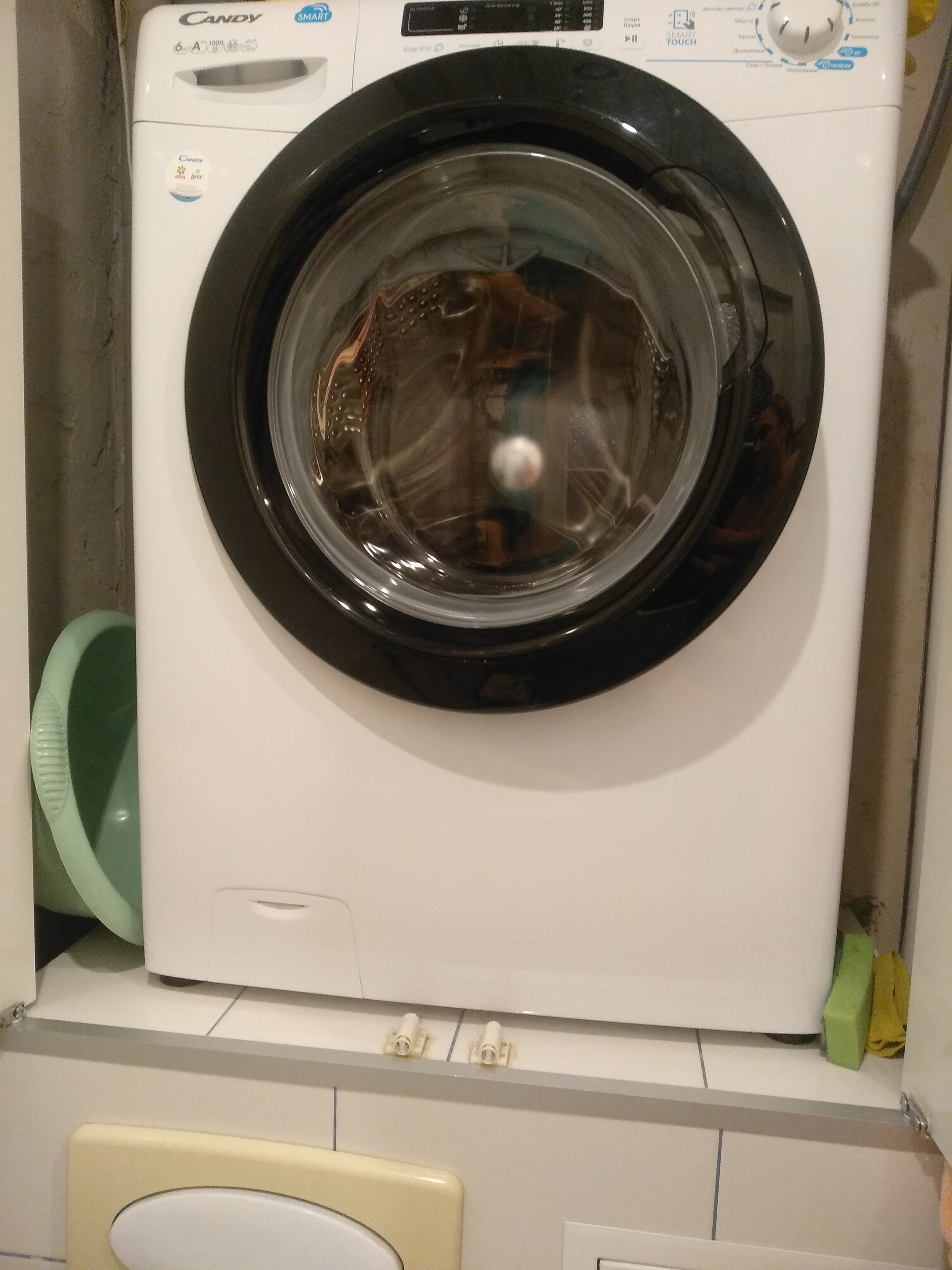 С ванной комнатой долго ломали голову, т.к. нужно было уместить машинку. Решили убрать ванну, т.к. она всё равно сидячая, а мы в основном душ принимаем. Стиралку поставили под акриловую столешницу, на всю ширину люк машинки не открывается, но меня в принципе устраивает, постельное белье нормально достаётся. В углу сделали душевой уголок (размер по сторонам - 90). В общем всё поместилось, но в большим трудом и не всё как надо (это я про машинку).