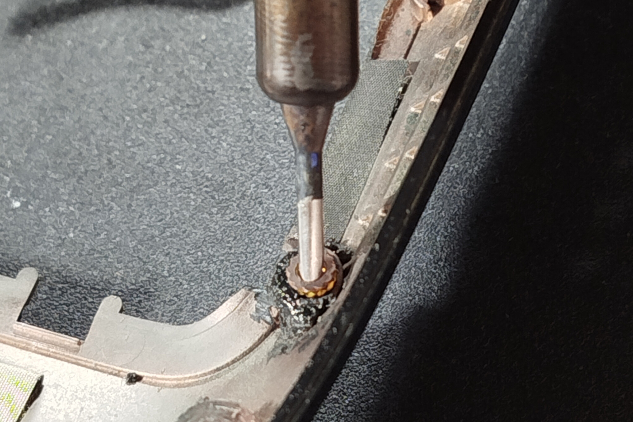 И с помощью обычного паяльника впаял туда прежнюю гайку: