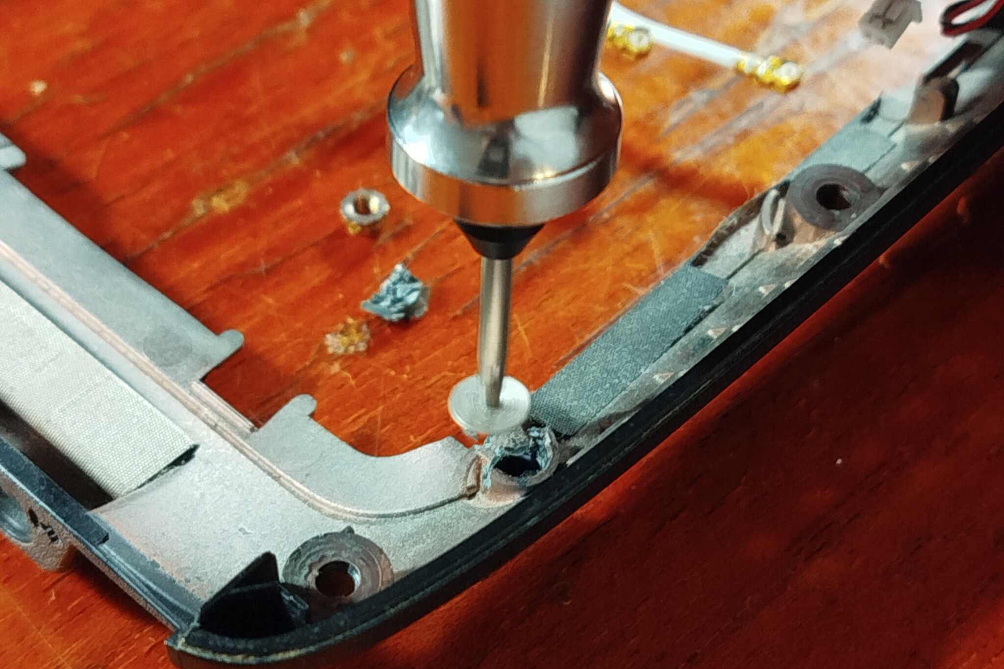 Срезаем заклёпки и добросовестно демонтируем деталь.