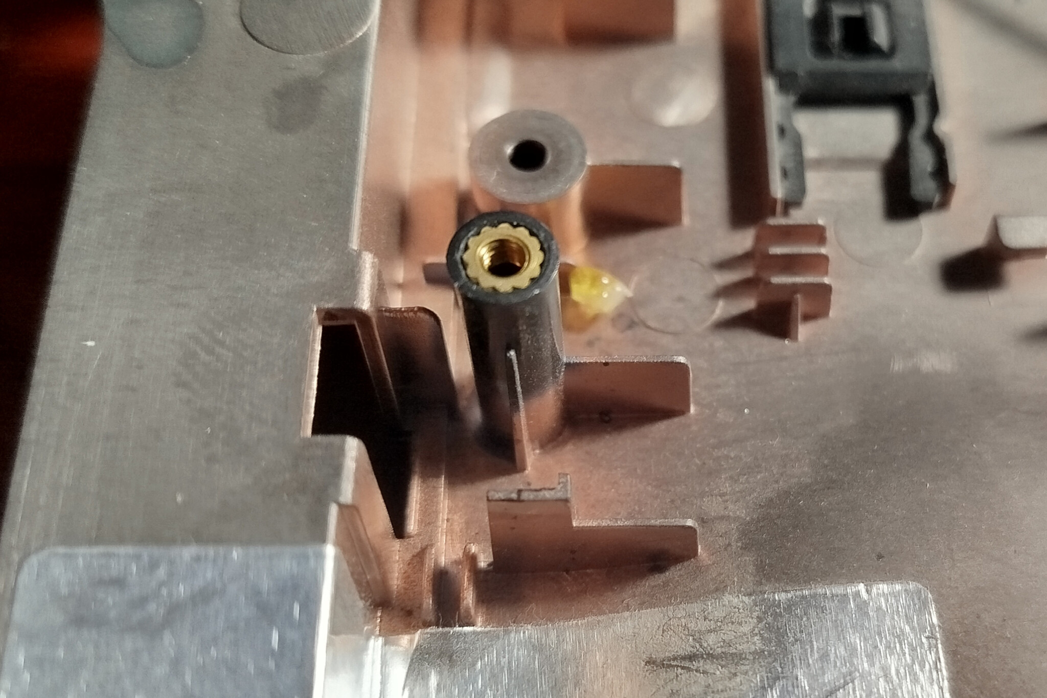 Да, поломка посадочного места для гайки - это довольно распространенное явление. Я наблюдал работы разных мастеров и все они такой недуг исправляли с помощью цианокрилатного клея и соды. Проверять восстановление "башенки" для гайки (как на фото ниже) я не стал, так как теоретически башенку можно полностью срезать, напечатать на 3D принтере новую и приклеить с помощью ацетона или того же суперклея.