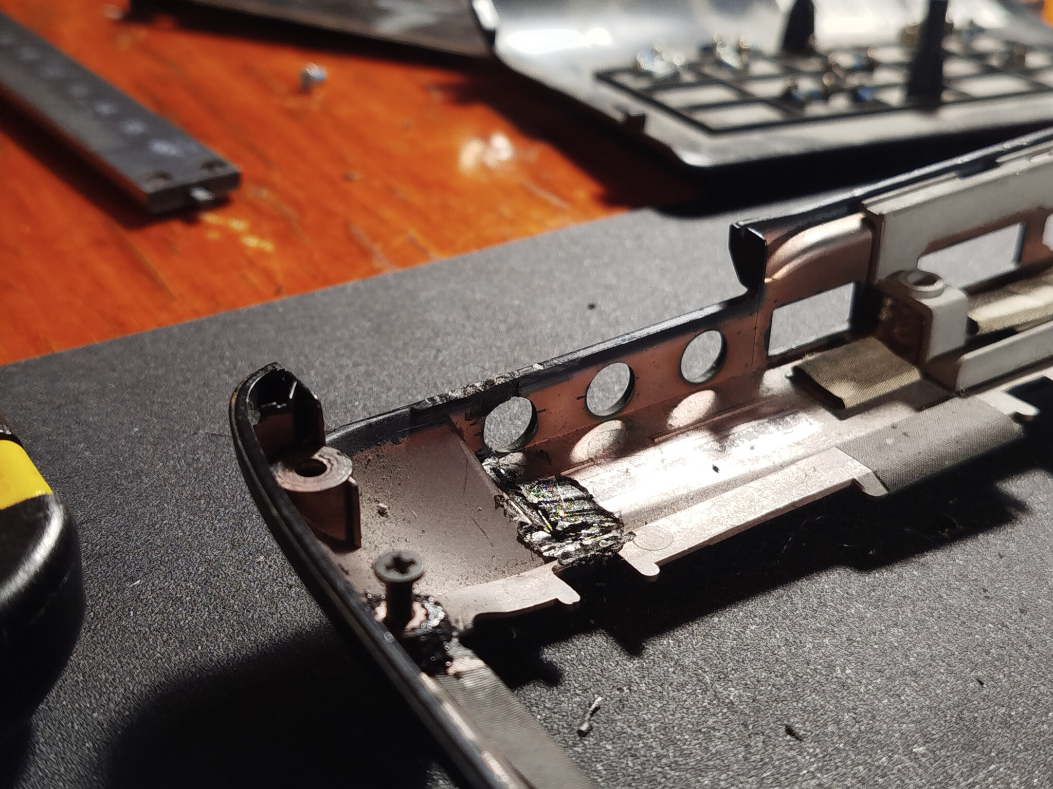 НО! Так как я пренебрег советом, где я данный процесс сравнил со сваркой металлических плит, и не стал вырезать/выгравировывать борозду вглубь пластика, шов у меня получился по сути по внутренней поверхности корпуса, а в толщине слом так и остался непропаянным. В результате данный шов получился непрочным и был готов снова сломаться.