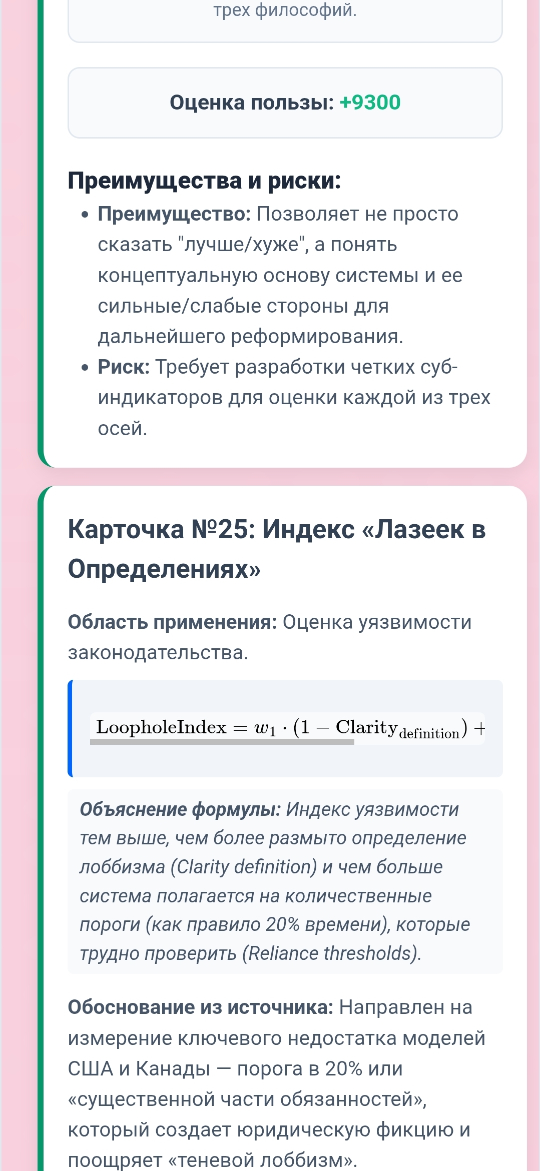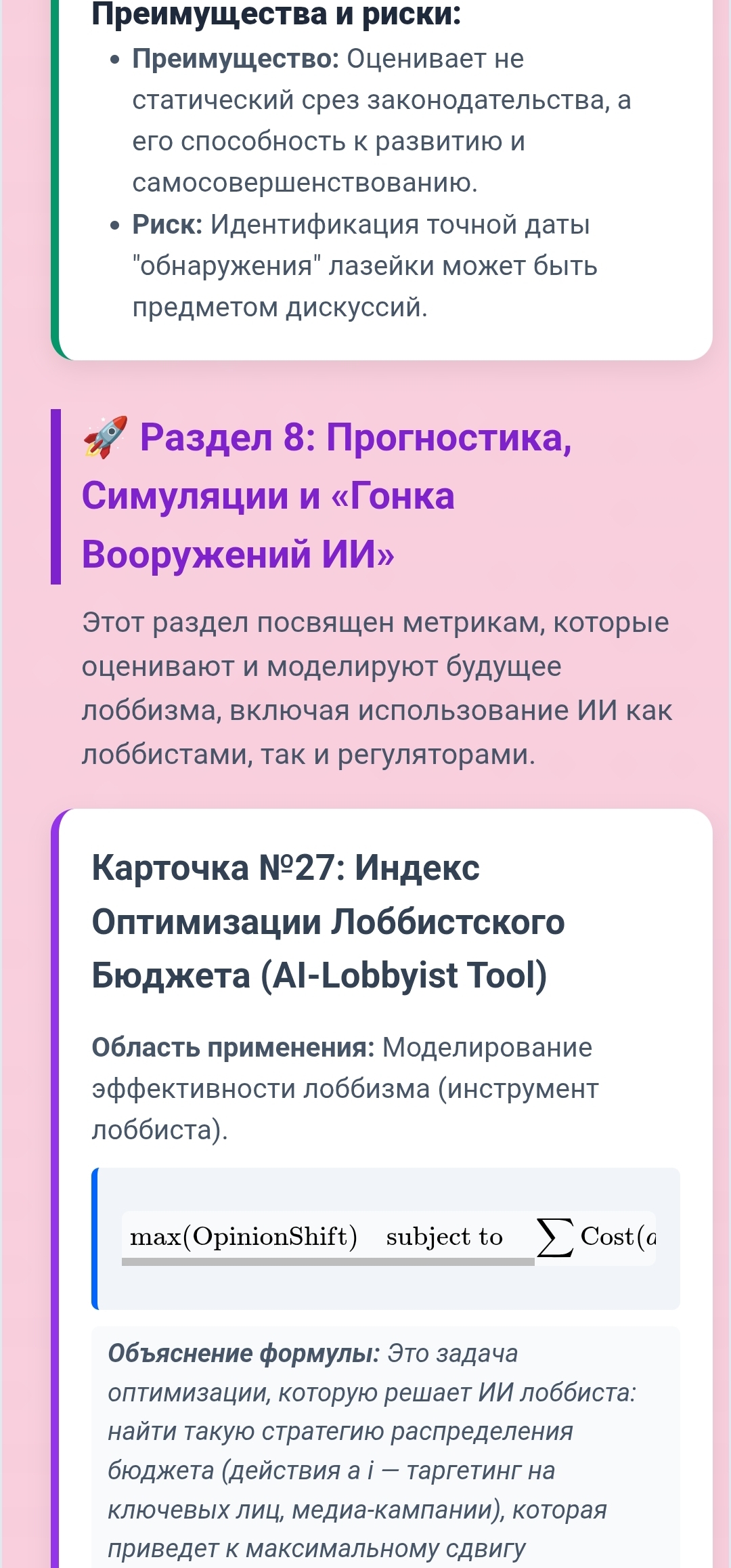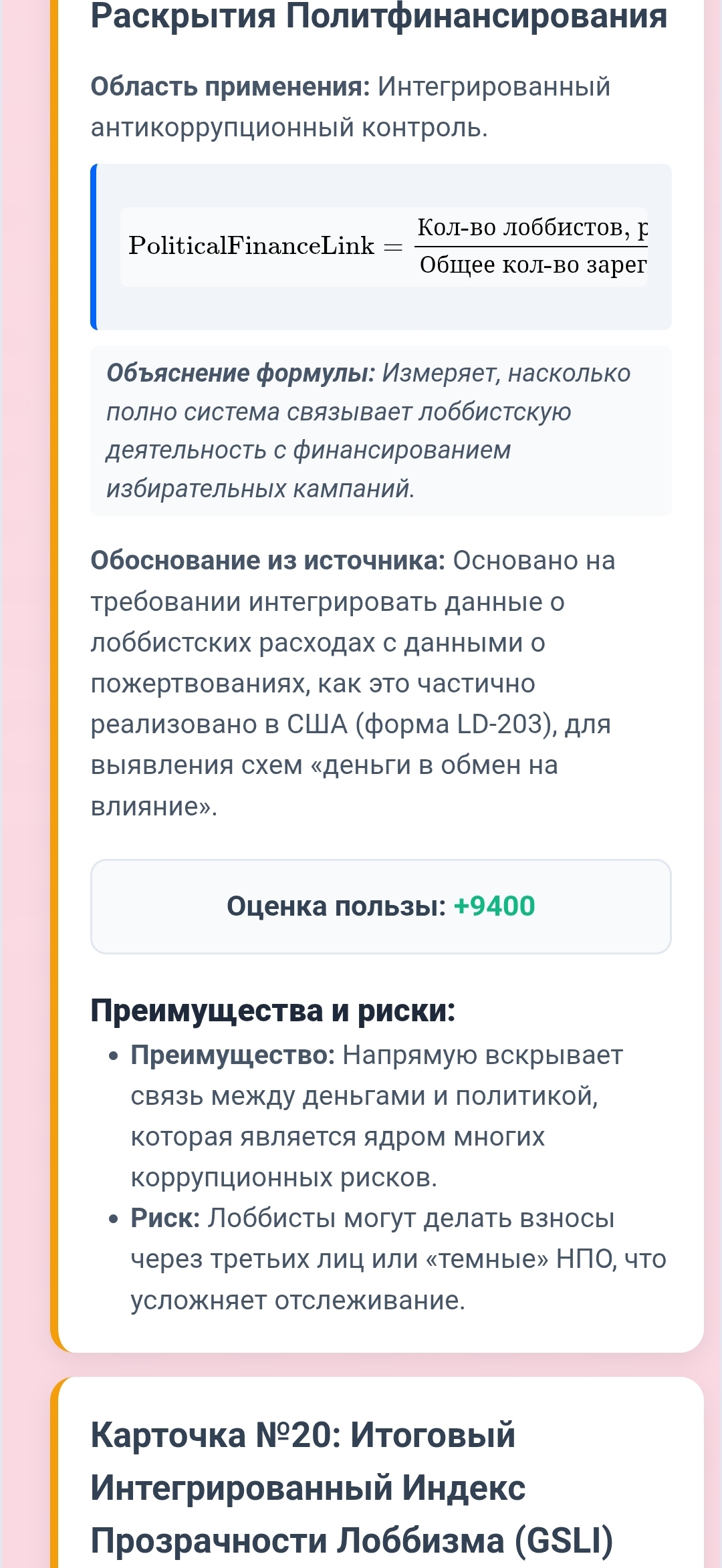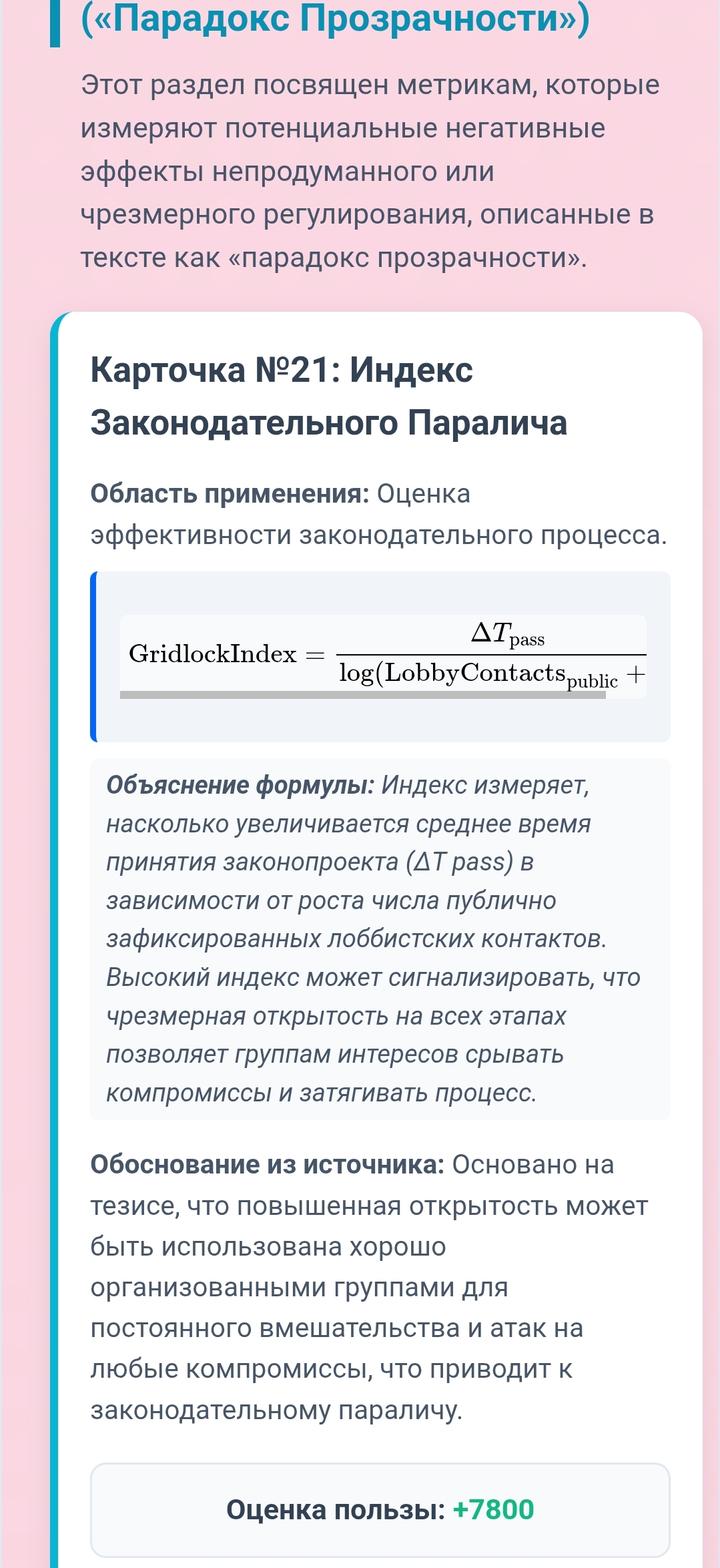 Дисклеймер: представленные формулы и идеи являются частью концептуального описания системы и не являются руководством к действию. Они созданы для иллюстрации того, как могла бы работать математика в утопической модели прозрачного лоббизма. Все совпадения случайны, а имена рандомны.