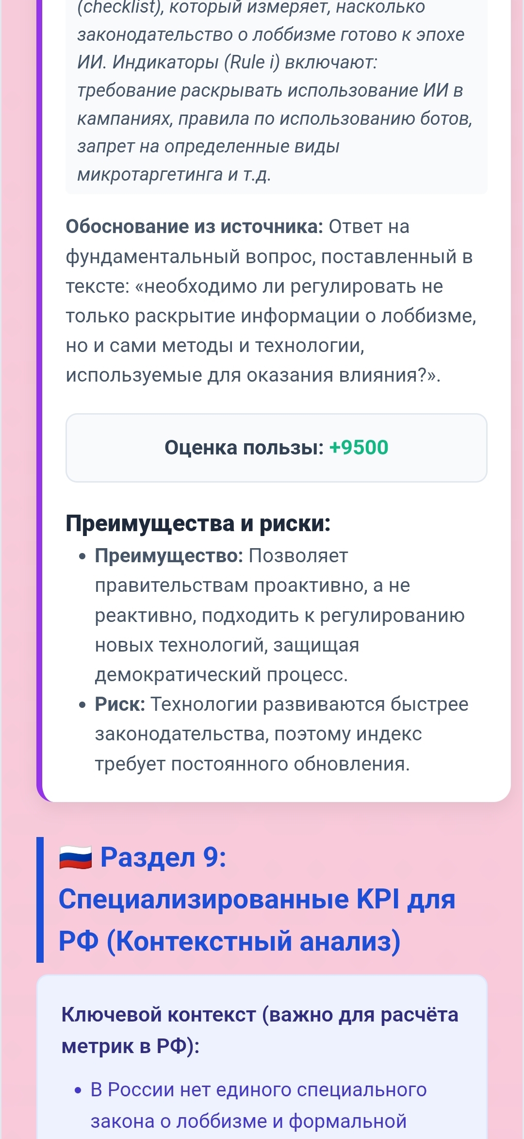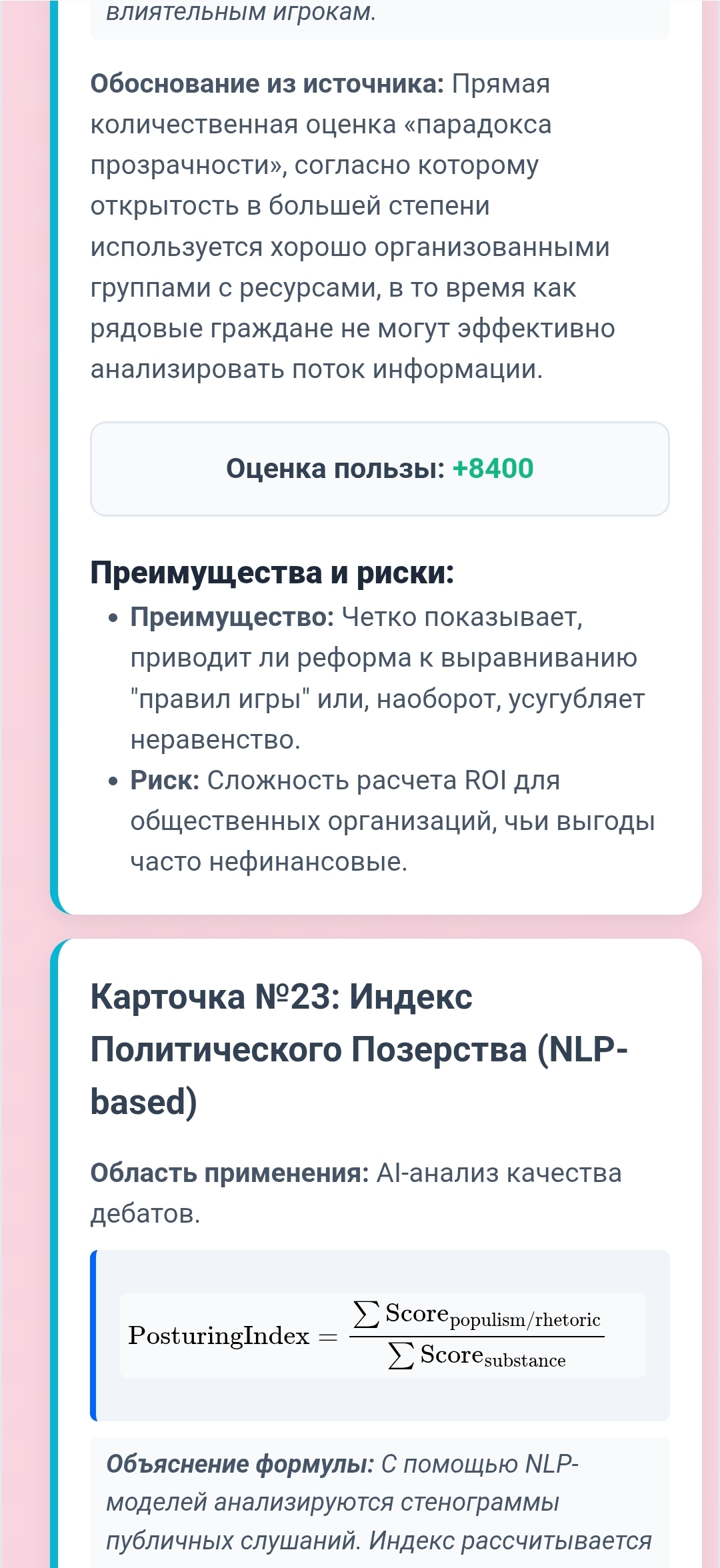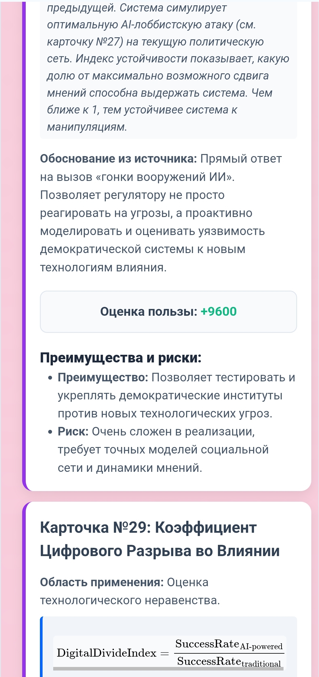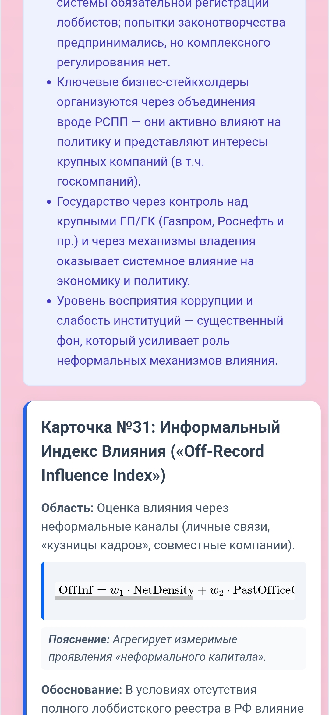 Дисклеймер: представленные формулы и идеи являются частью концептуального описания системы и не являются руководством к действию. Они созданы для иллюстрации того, как могла бы работать математика в утопической модели прозрачного лоббизма. Все совпадения случайны, а имена рандомны.