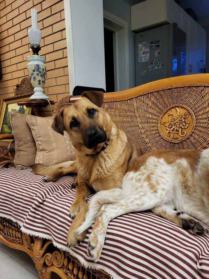 Афина чудесная собака. Очень ласковая. Любит всех. Детей особенно. Дружит с собаками. Кошек опасается. Гуляет на поводке .