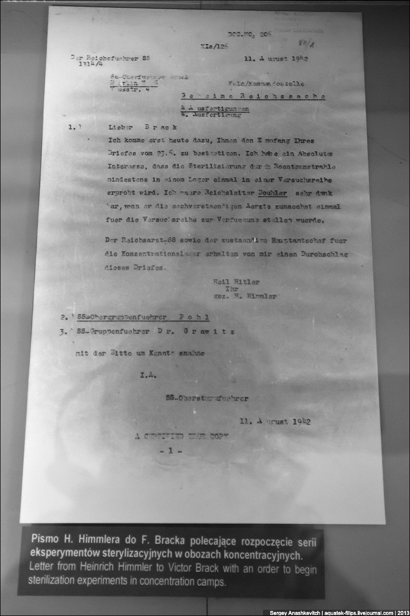 Письмо Генриха Гиммлера, в котором он приказывает начать серию экспериментов по стерилизации.